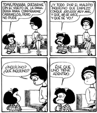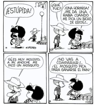 Desde la materia de Lengua Castellana y Literatura también participan en el proyecto ComunicArte analizando la comunicación, elementos y tipos. Así, se han  acercado a la particular visión del mundo por parte de Mafalda. Sin duda, una diferente manera de comunicar y ver la vida.
