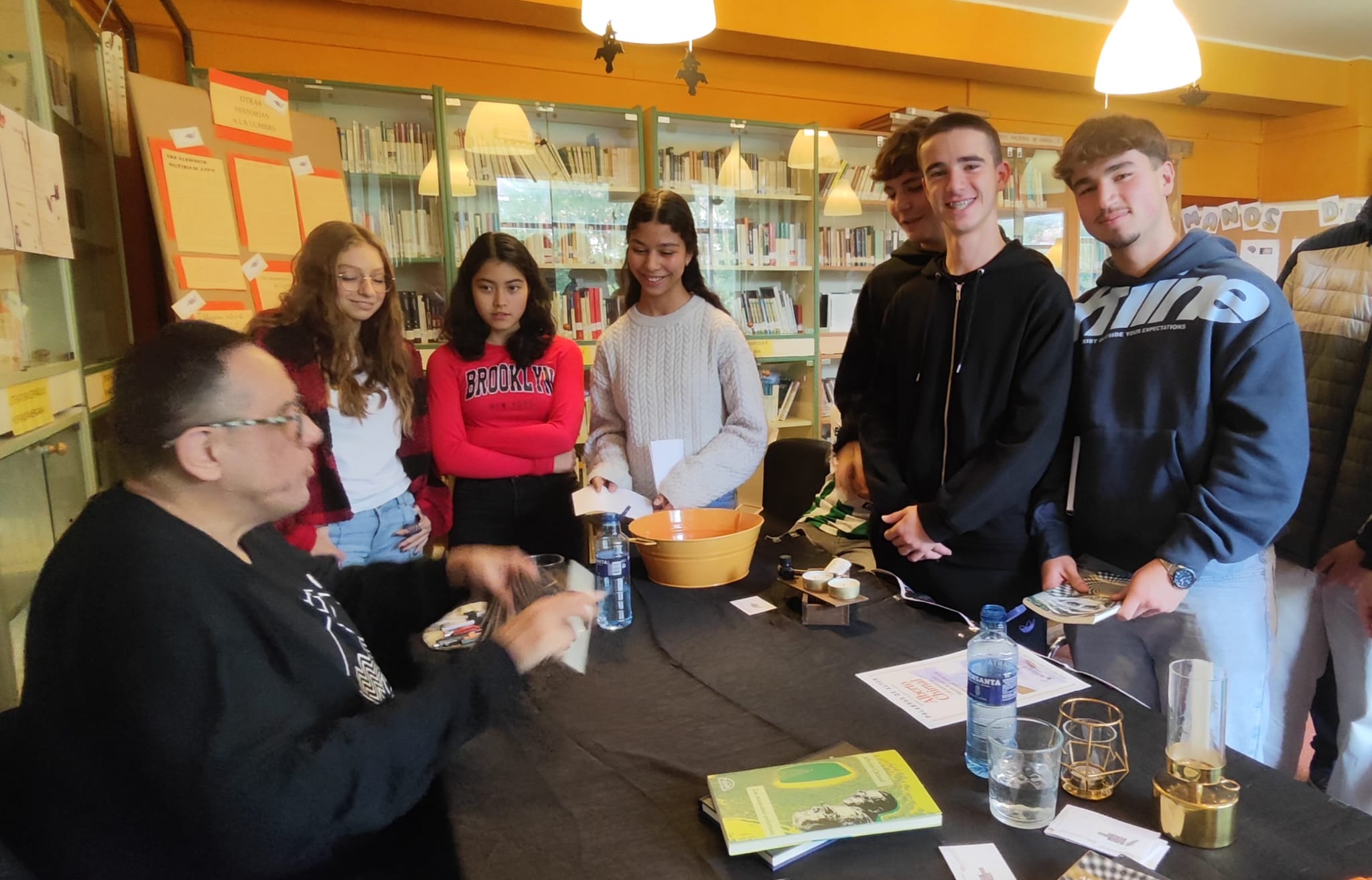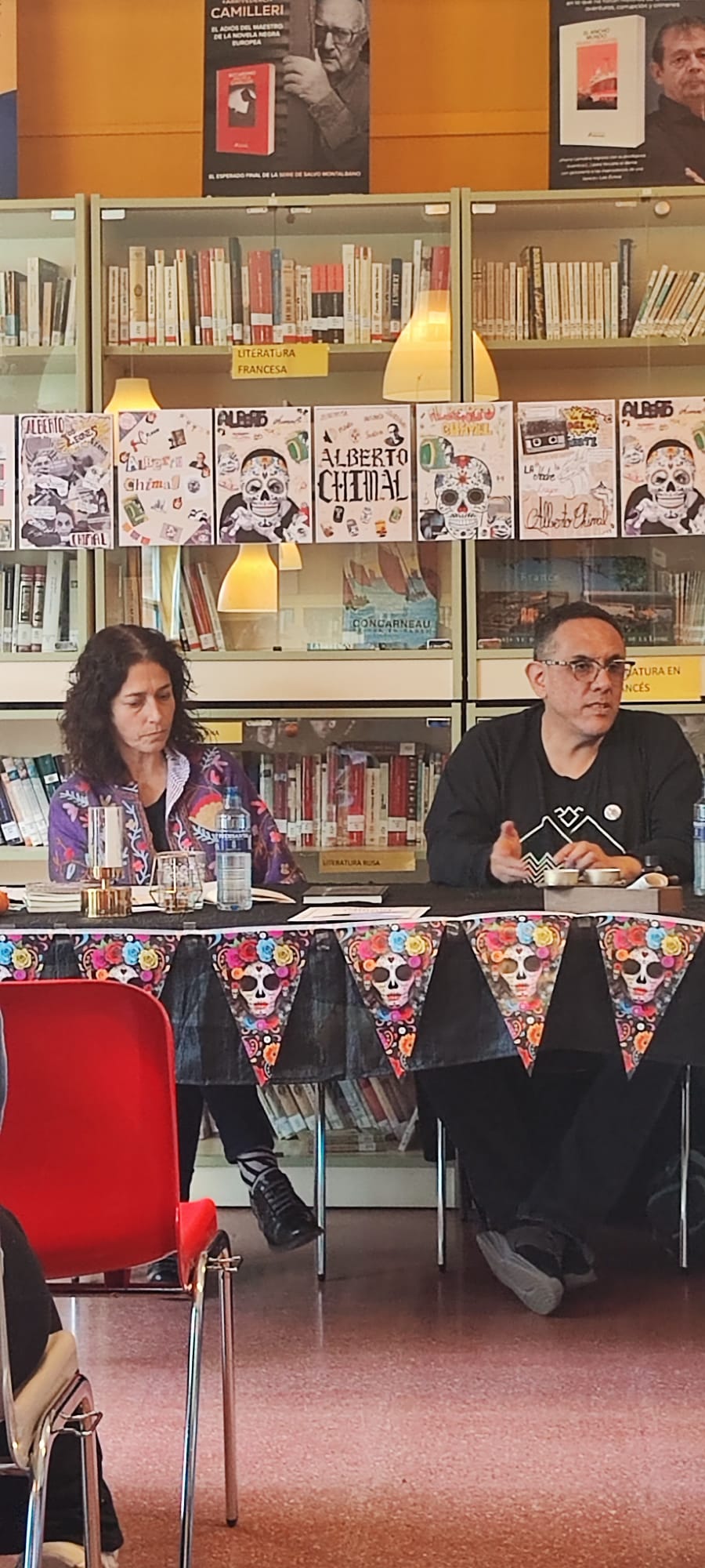 El día 30 de octubre el escritor mexicano Alberto Chimal mantuvo un encuentro literario con el alumnado de 4º ESO y de Literatura Universal en la biblioteca del instituto. El autor conversó sobre el Día de Muertos en México y sobre sus obras de cuentos Los atacantes, Manos de lumbre y Las máquinas enfermas. Los alumnos y las alumnas realizaron previamente una lectura reflexiva y crítica de los cuentos en el aula y diversos trabajos de creación e investigación sobre el autor y algunos de sus relatos, que han sido expuestos en el lugar del encuentro. Esta actividad se desarrolla dentro del marco del proyecto de lectura del centro Quien lo probó lo sabe y del proyecto La Factoría Subversiva.
