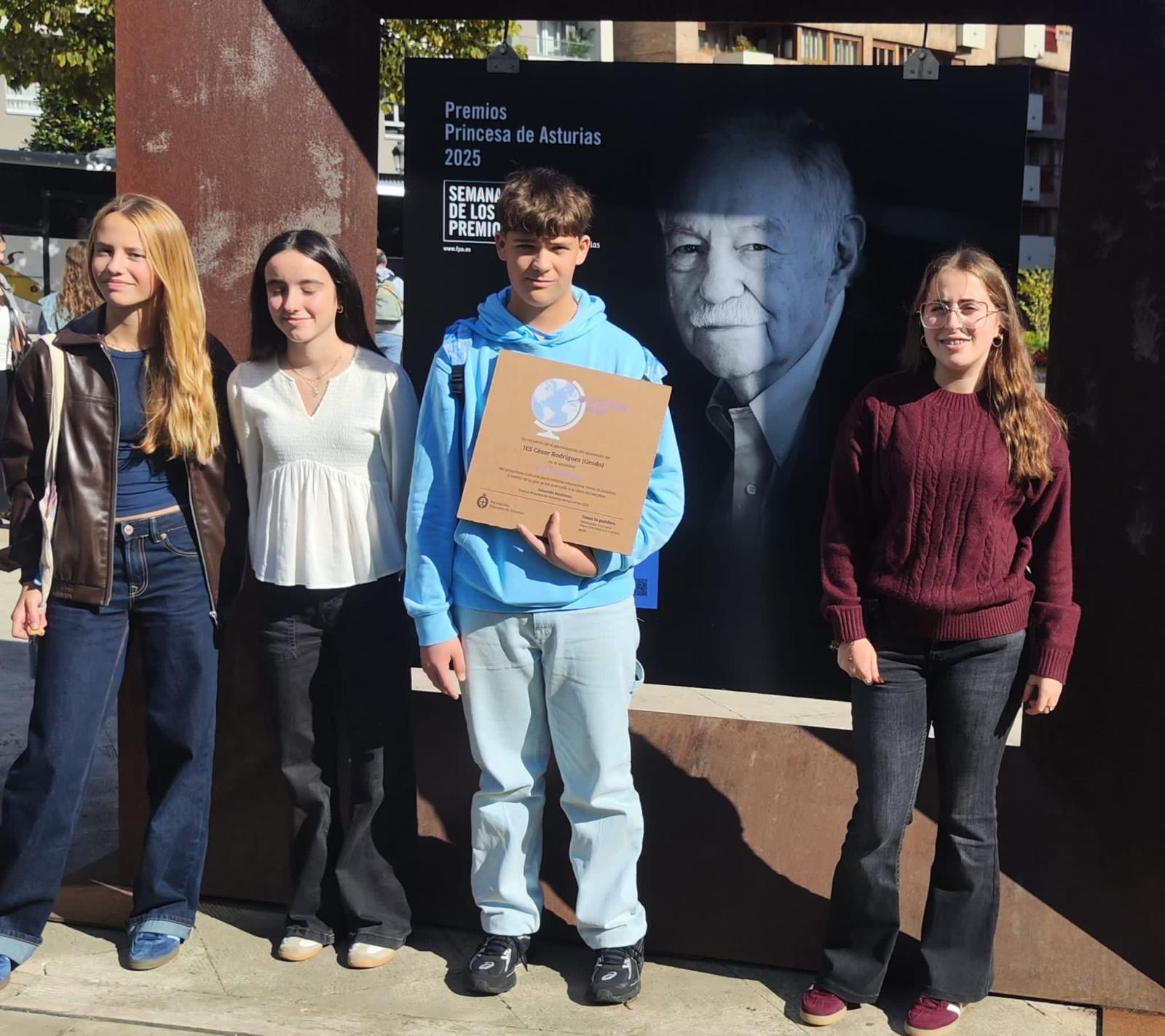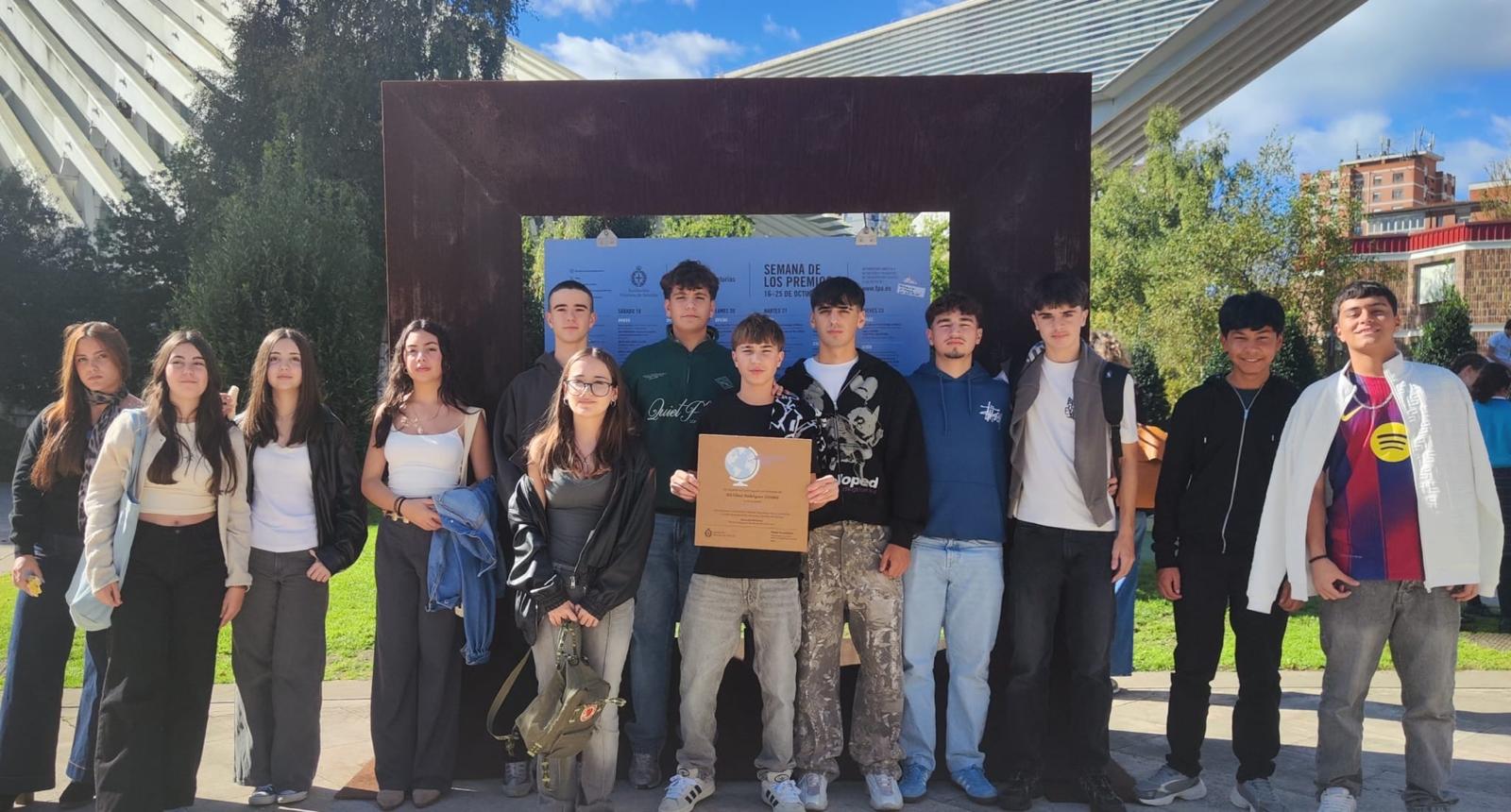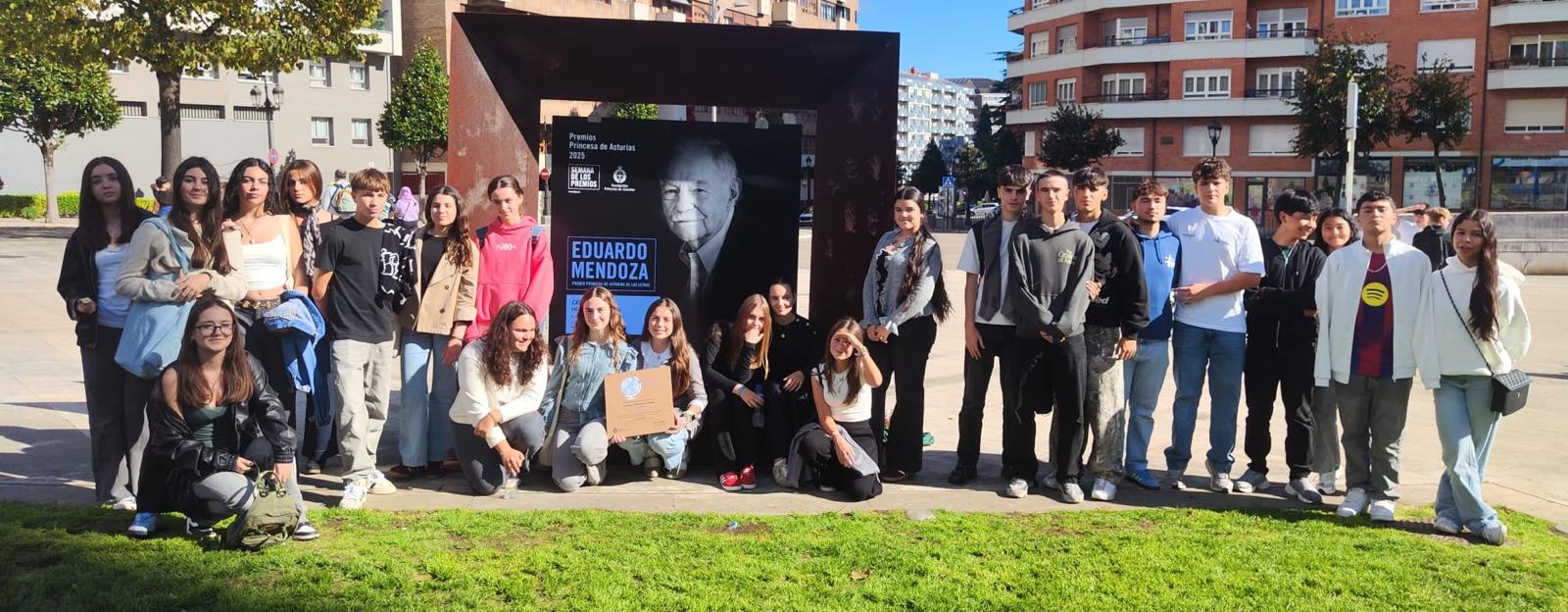 El pasado martes 21 de octubre un grupo de alumnos y de alumnas de 3º y 4º ESO asistieron como representantes de nuestro instituto al encuentro con el escritor Eduardo Mendoza, que la Fundación Princesa de Asturias organizó con motivo de los Premios de este año y que tuvo lugar en el Palacio de Exposiciones y Congresos de Oviedo. Este acto fue el colofón de la actividad “Si yo fuera Gurb”, relacionada con el Premio de las Letras 2025, incluida dentro del Proyecto Cultural Toma la Palabra dirigido a los centros educativos. La alumna Imane Hachimi El Arsaqui compartió escenario con el escritor y tuvo la oportunidad de preguntarle si había sido lector en su adolescencia y si creía que en esa etapa de su vida habría disfrutado de la lectura de su novela Sin noticias de Gurb.