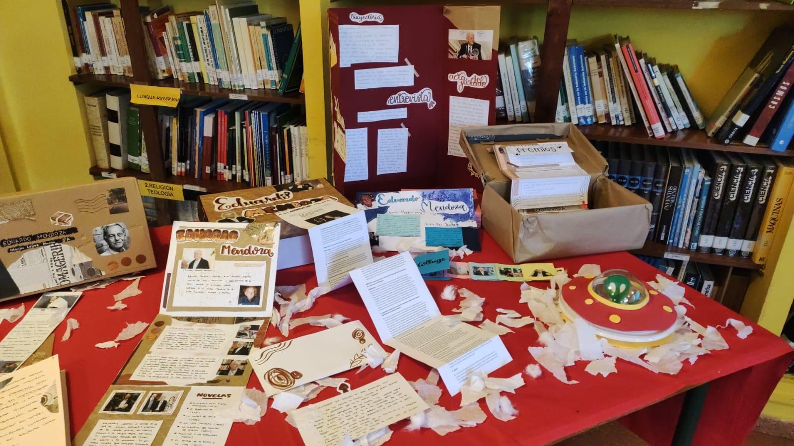 Las creaciones literarias y las investigaciones realizadas por el alumnado están expuestas en la biblioteca y en los pasillos del instituto.