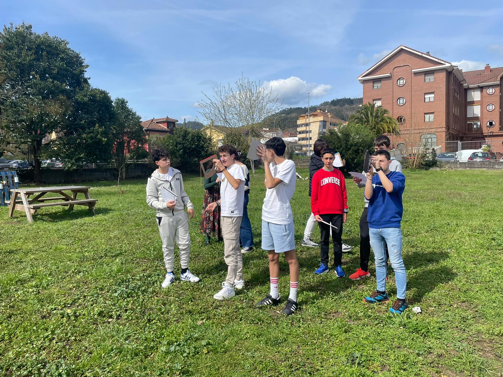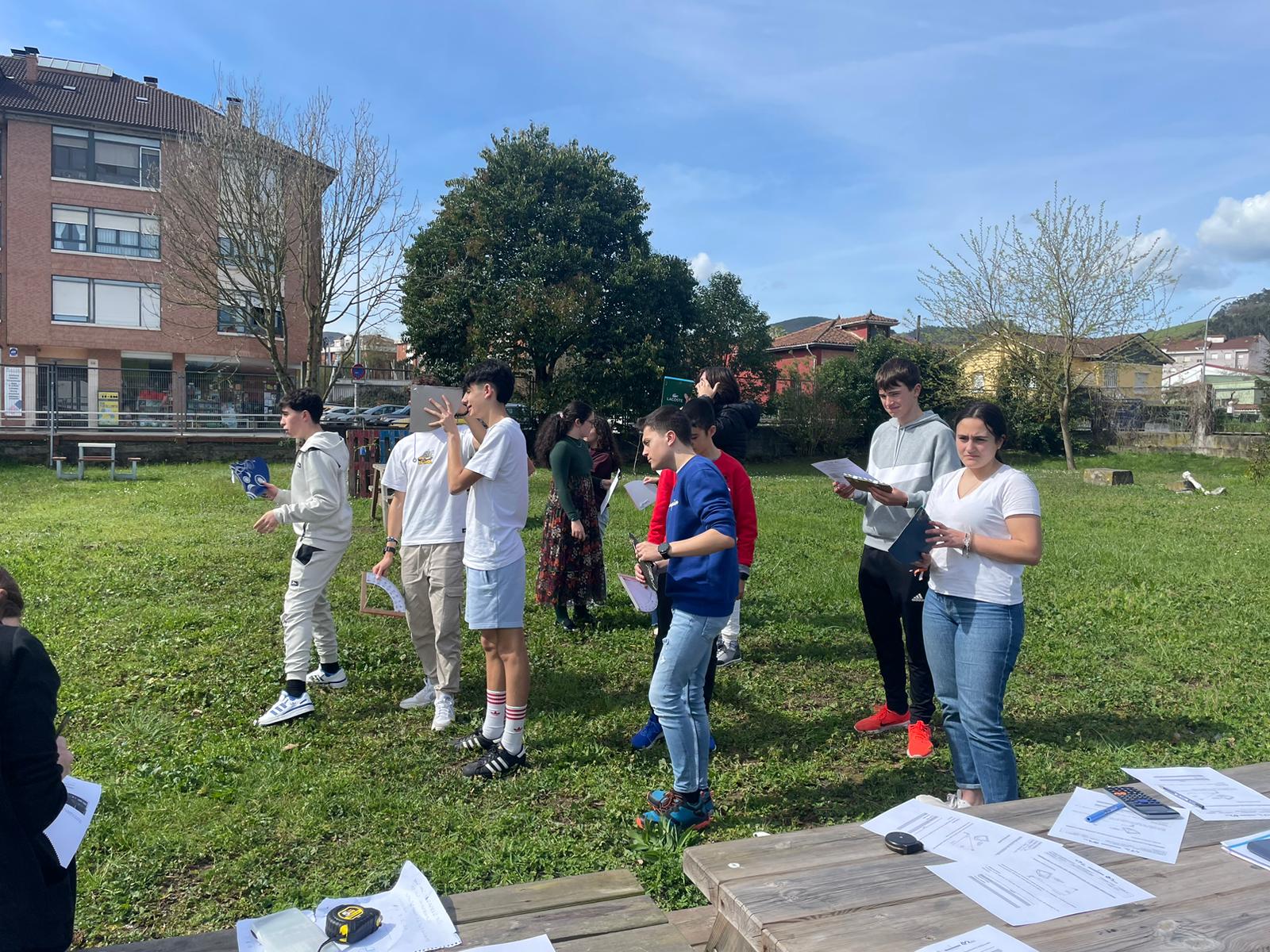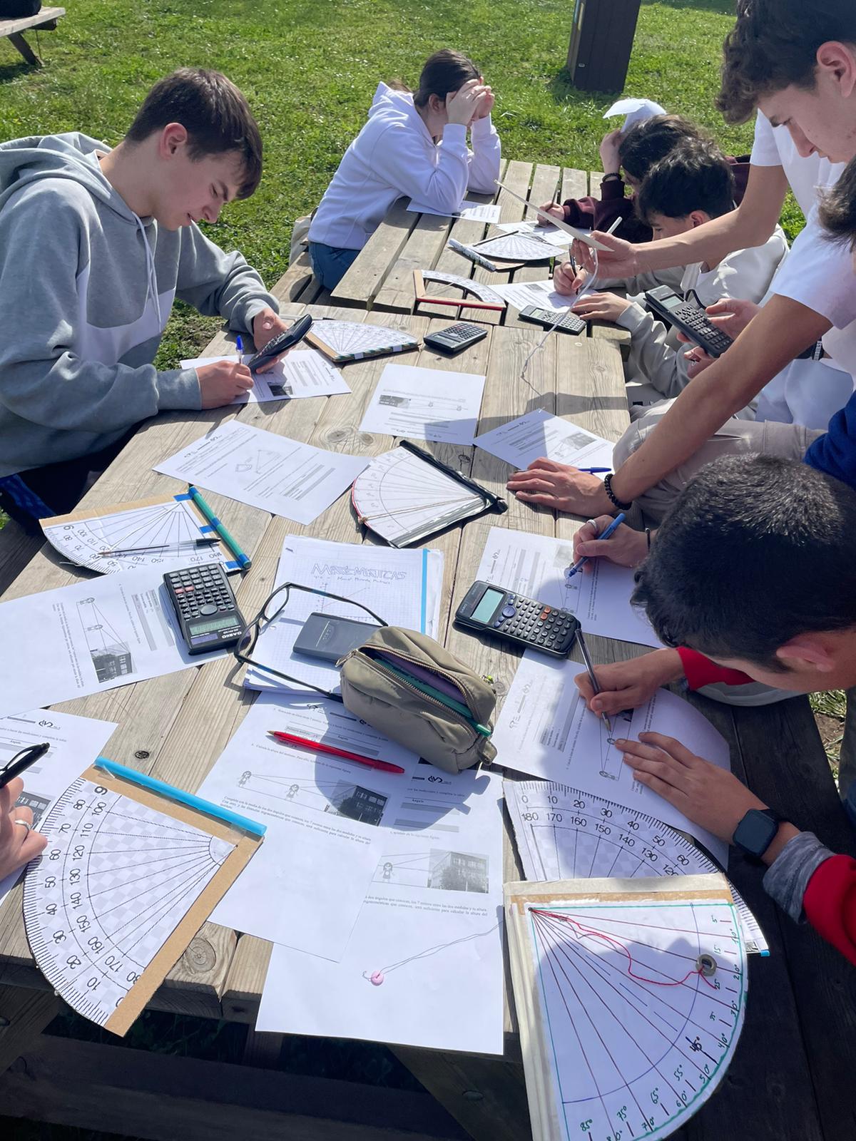 El viernes 15 de marzo, el alumnado de 4º ESO ha llevado a cabo su clase de Matemáticas en el patio. Todos ellos han construido su propio astrolabio casero (aparato de medida de ángulos), y, con ayuda de la trigonometría, han calculado la altura del edificio principal de nuestro instituto.
