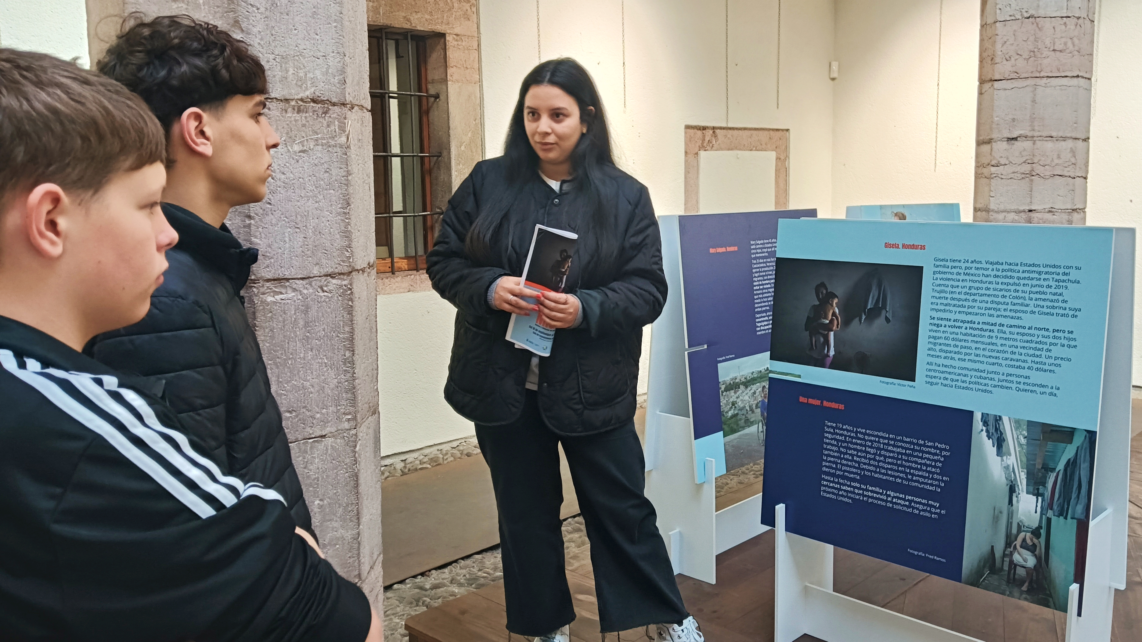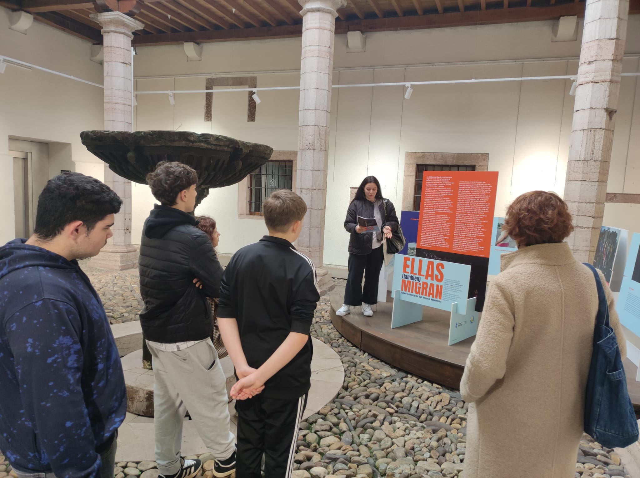 El miércoles 27 de noviembre, en el claustro de La Casa de Cultura de Grau, los alumnos de 3º PDC, desde la asignatura Ámbito LingüÍstico y Social, asistieron a una visita guiada a la exposición Ellas (también) migran.