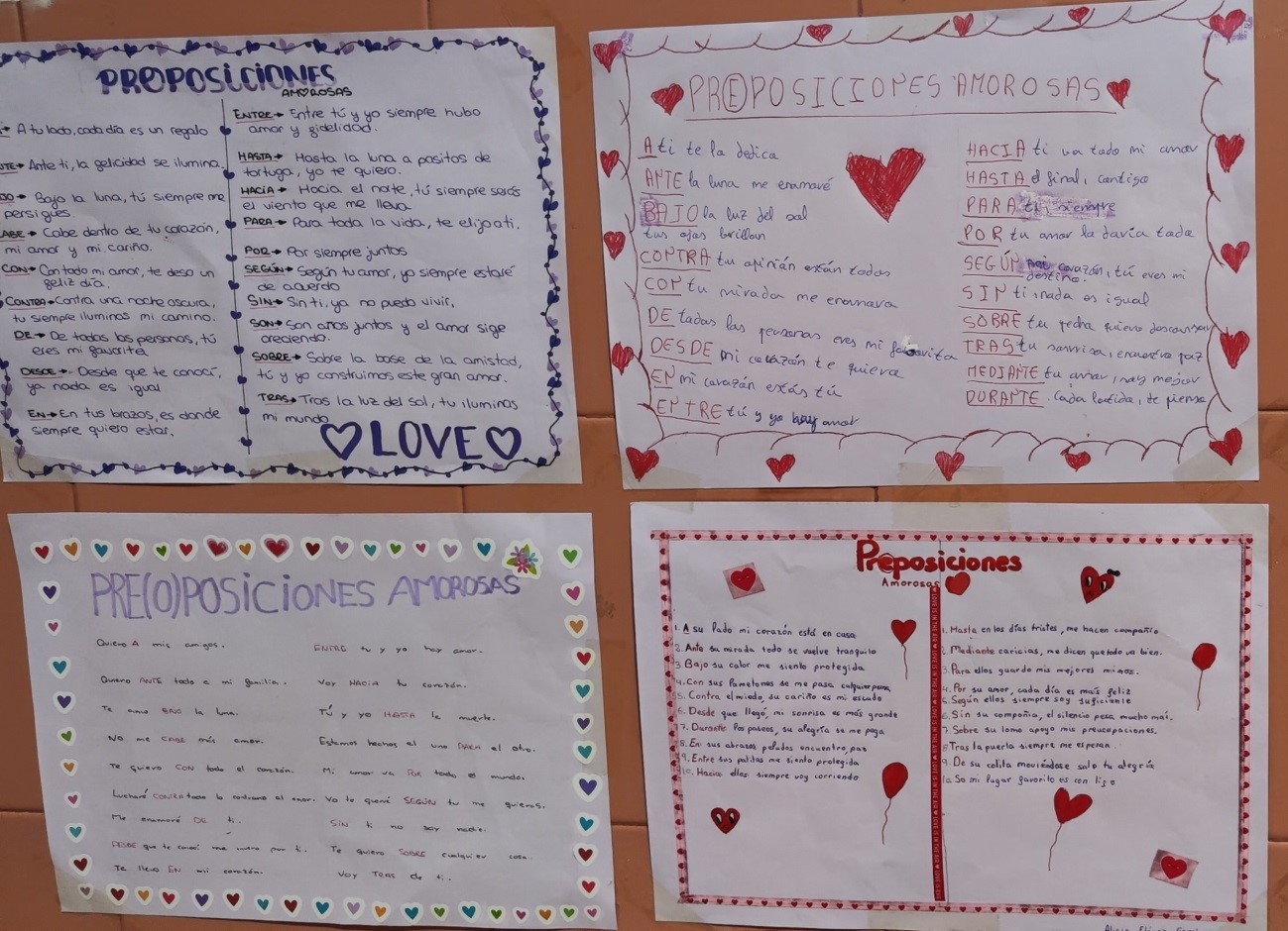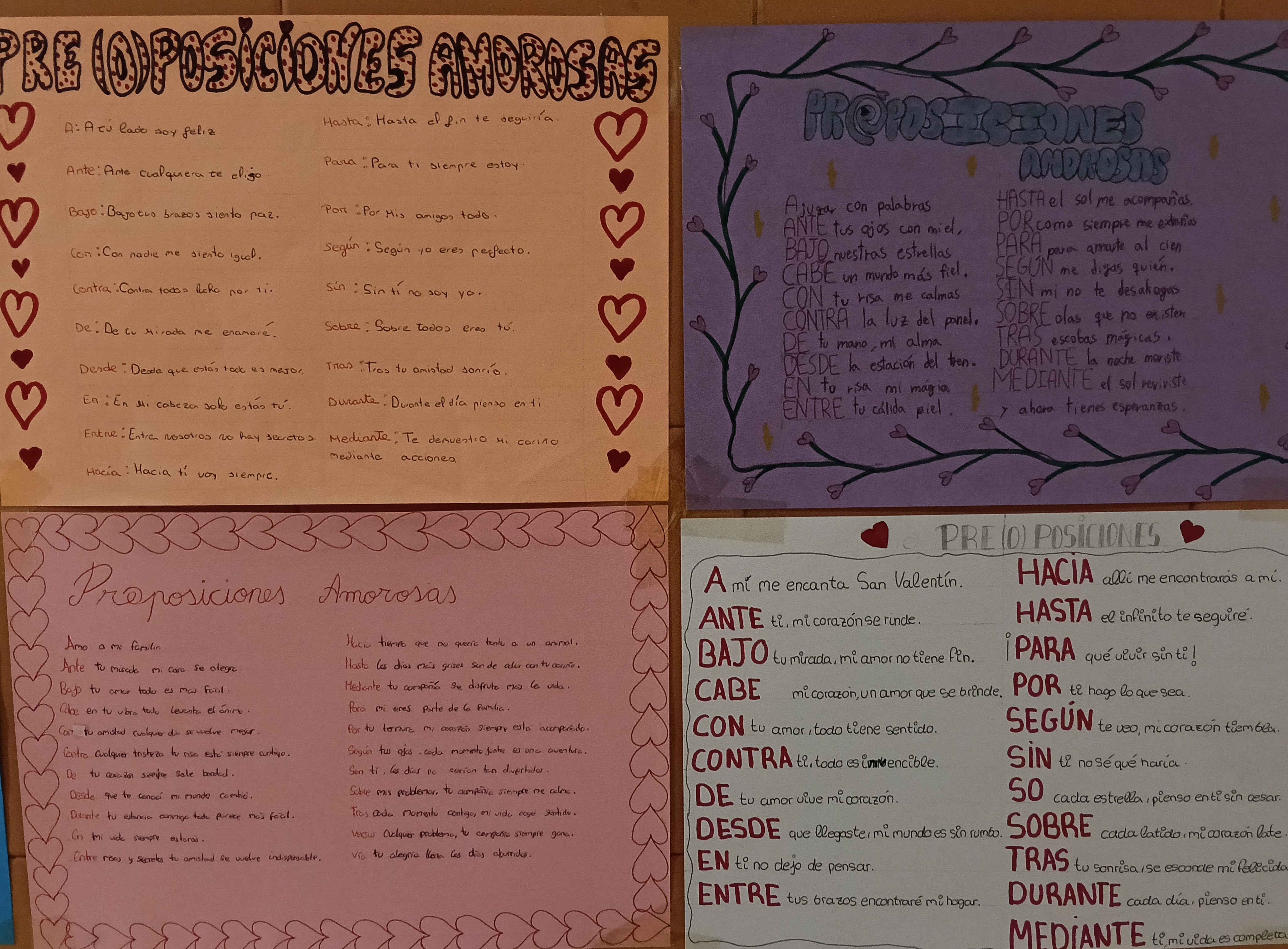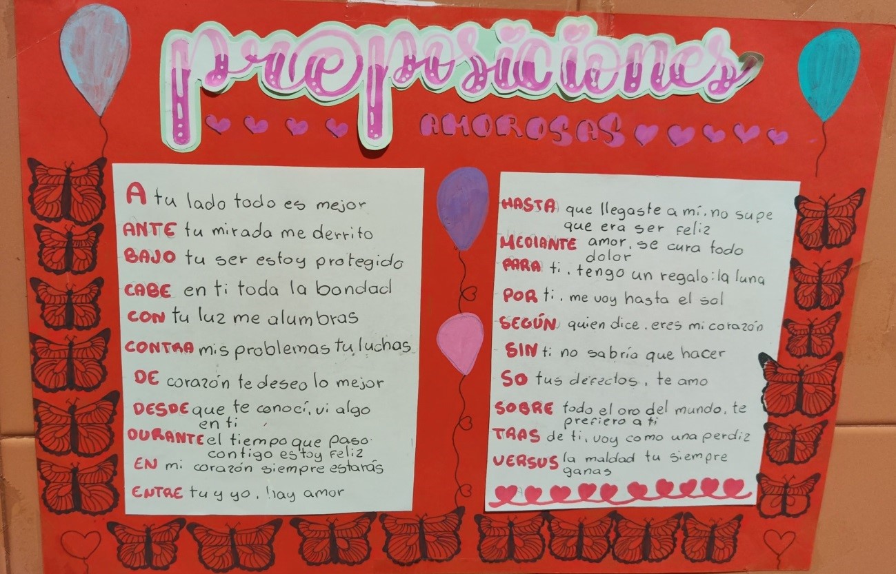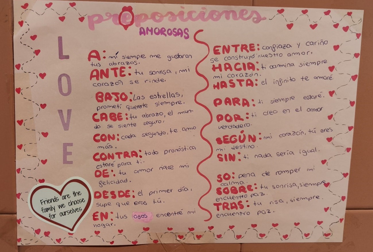 La morfología no tiene por qué ser aburrida. Por ello, el alumnado de 1º ESO ha diseñado, con motivo del Día de San Valentín unos carteles donde recogen originales pre(o)posiciones amorosas.