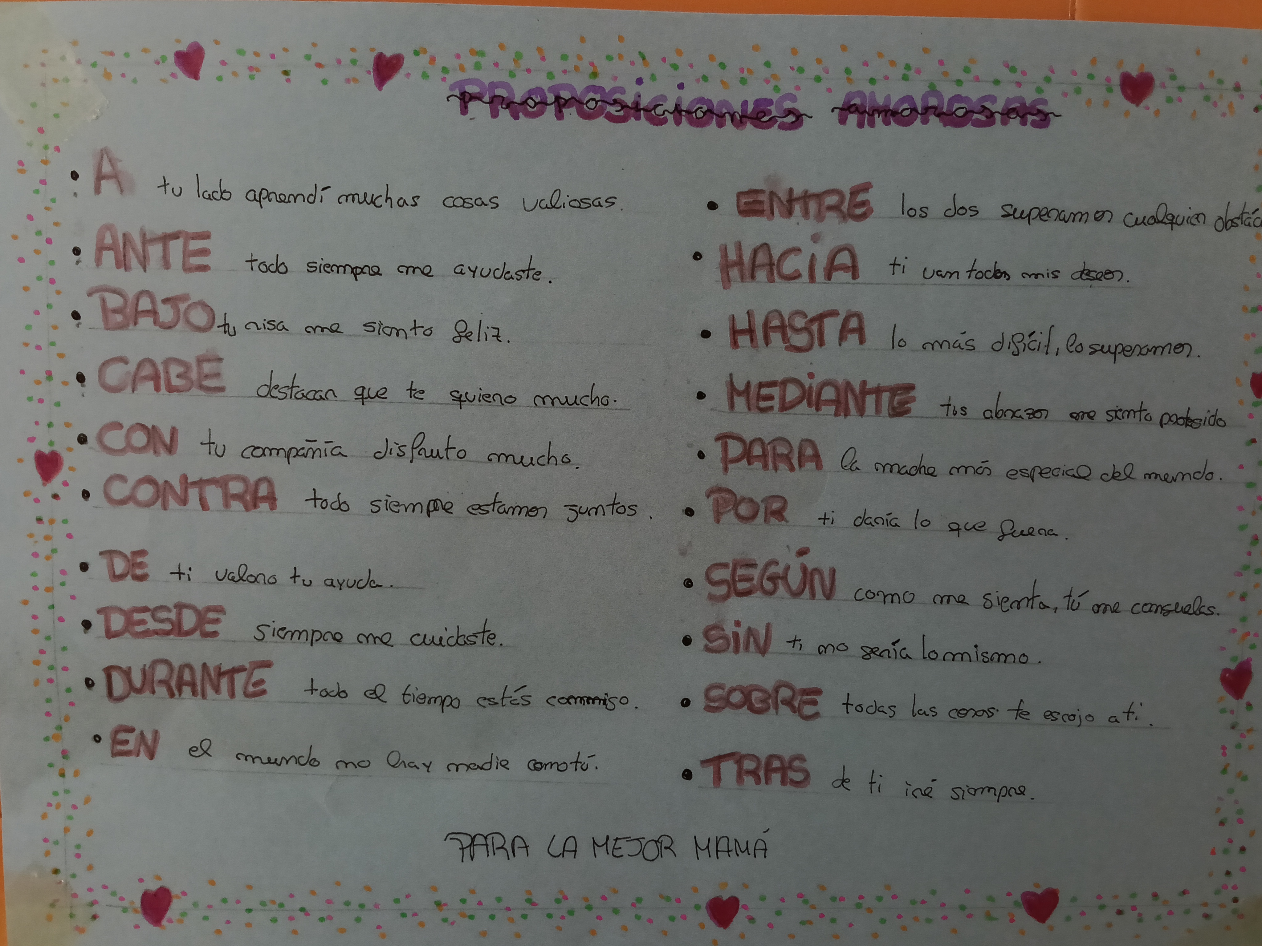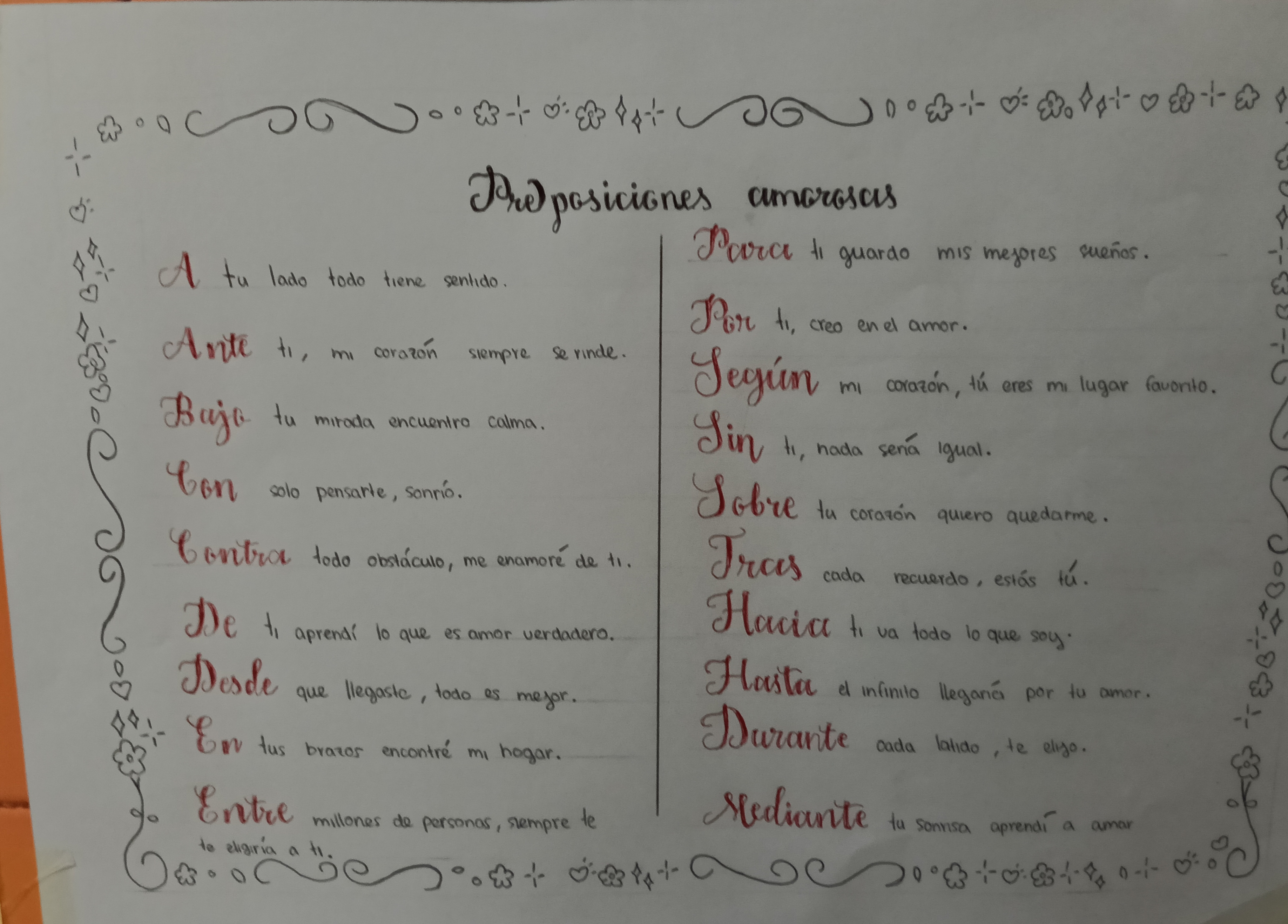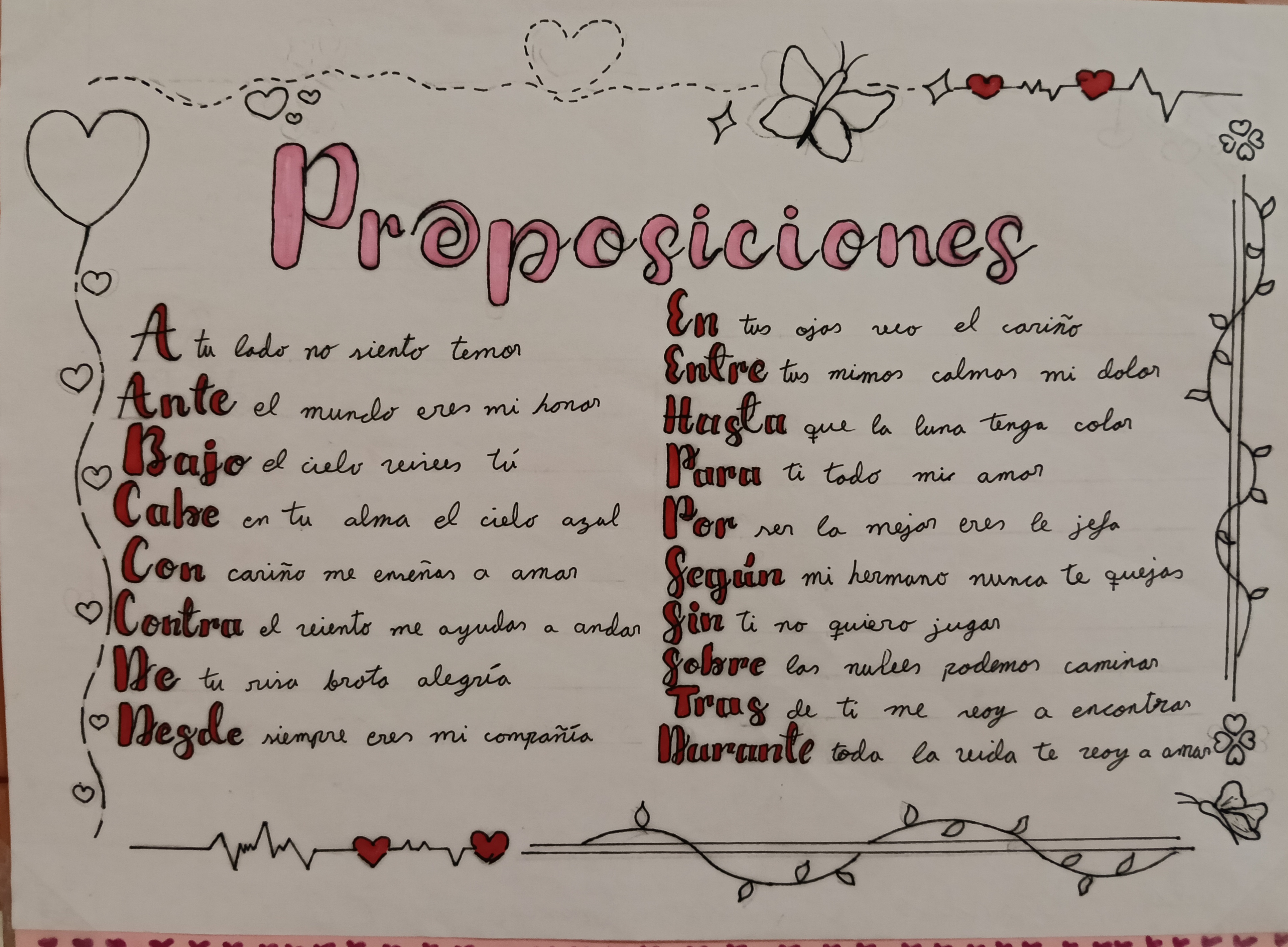La morfología no tiene por qué ser aburrida. Por ello, el alumnado de 1º ESO ha diseñado, con motivo del Día de San Valentín unos carteles donde recogen originales pre(o)posiciones amorosas.