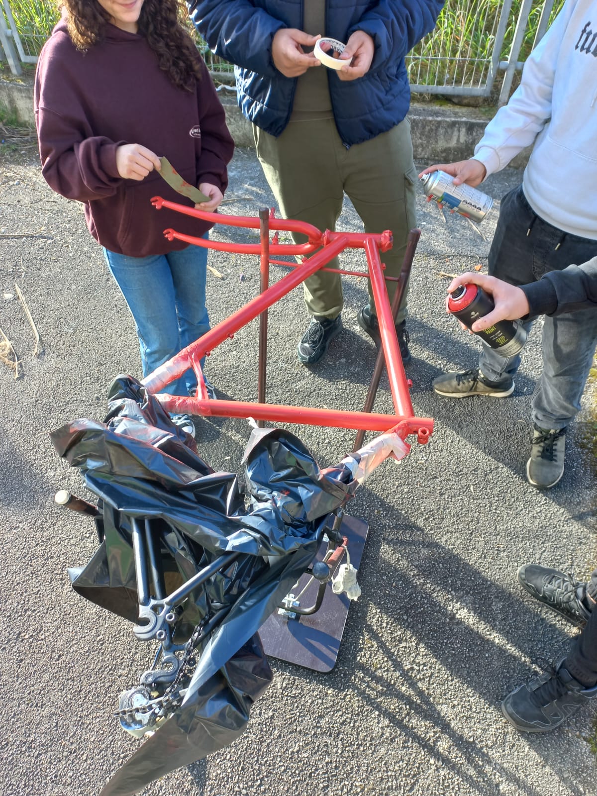 Alumnado de 4º ESO electrificando una bicicleta