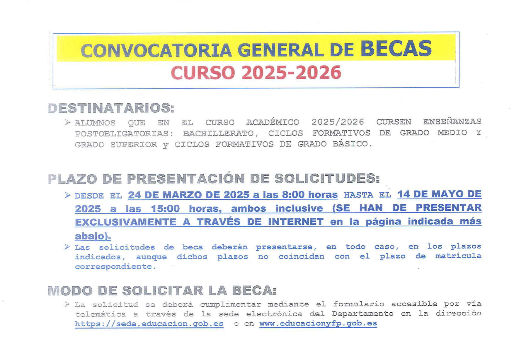 Convocatoria General de Becas Curso 25/26