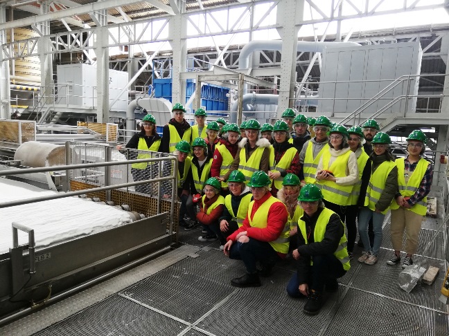 En la foto se puede ver al grupo de alumnos durante la visita a la planta de carbonato.