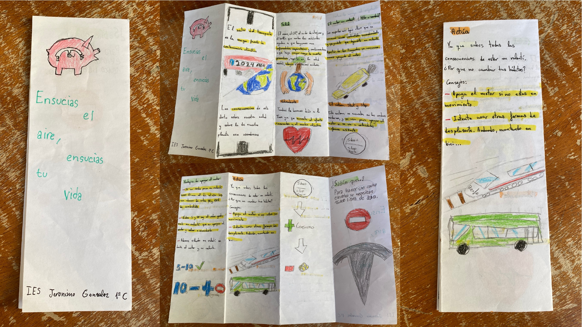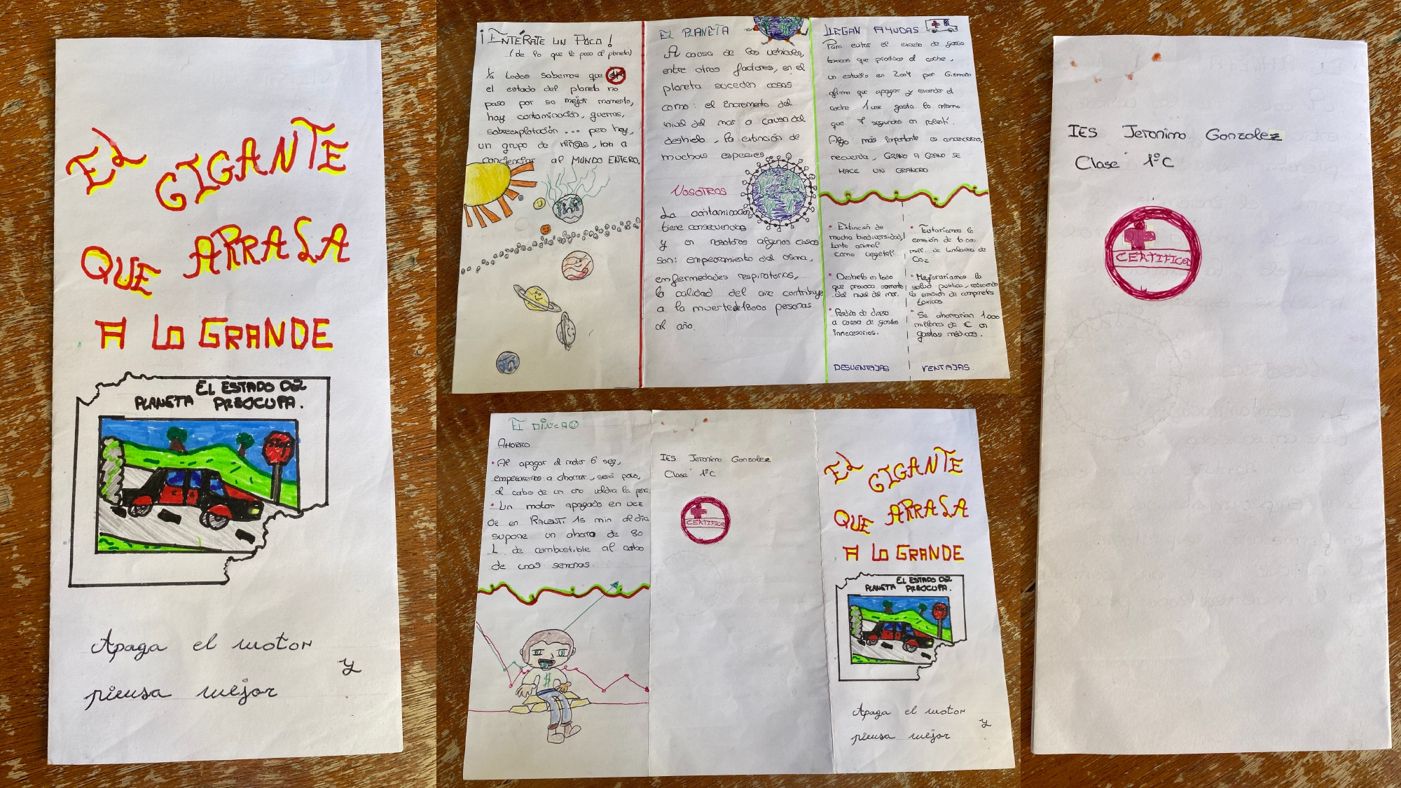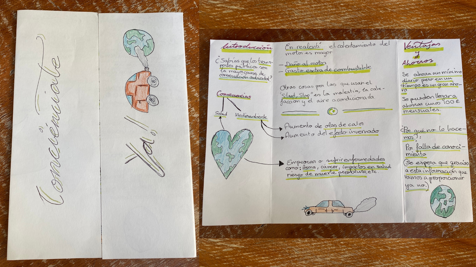 Desde la asignatura de Biología y Geología, los alumnos de 1ºC de ESO han participado en el proyecto «Concienciamos». Con ello, se busca concienciar sobre el efecto de los gases de los coches y la importancia de apagar el motor cuando el coche no está en movimiento.