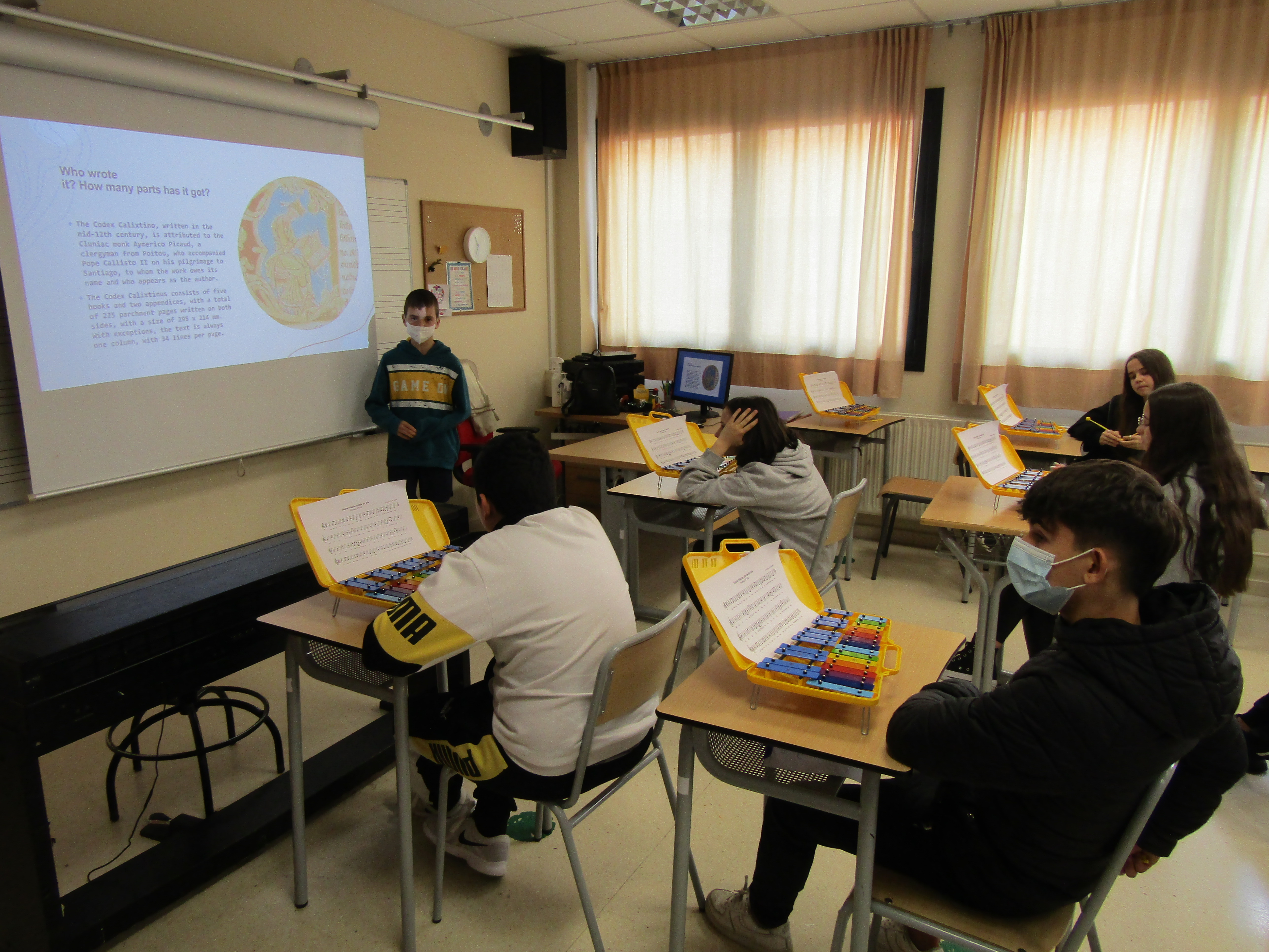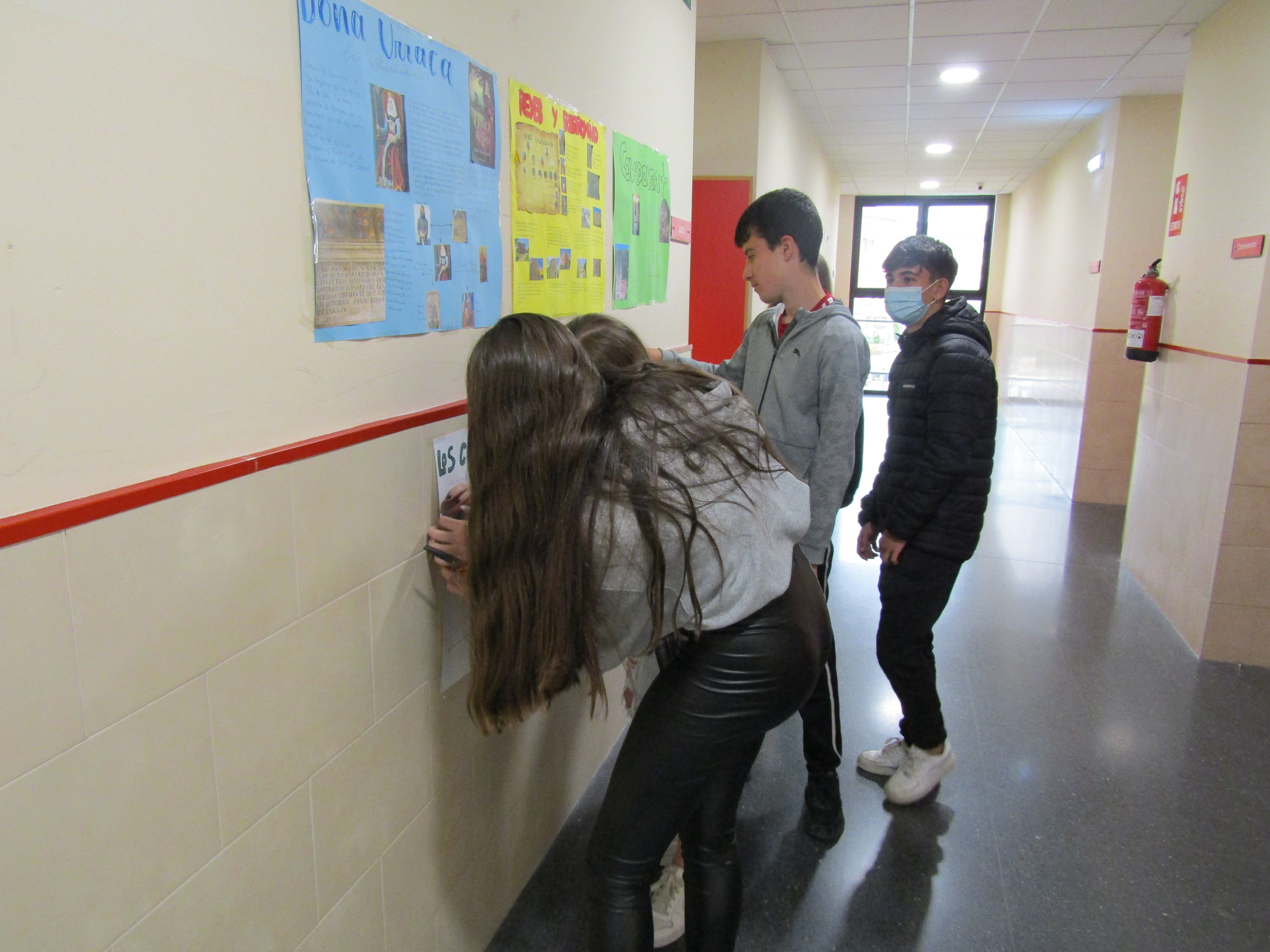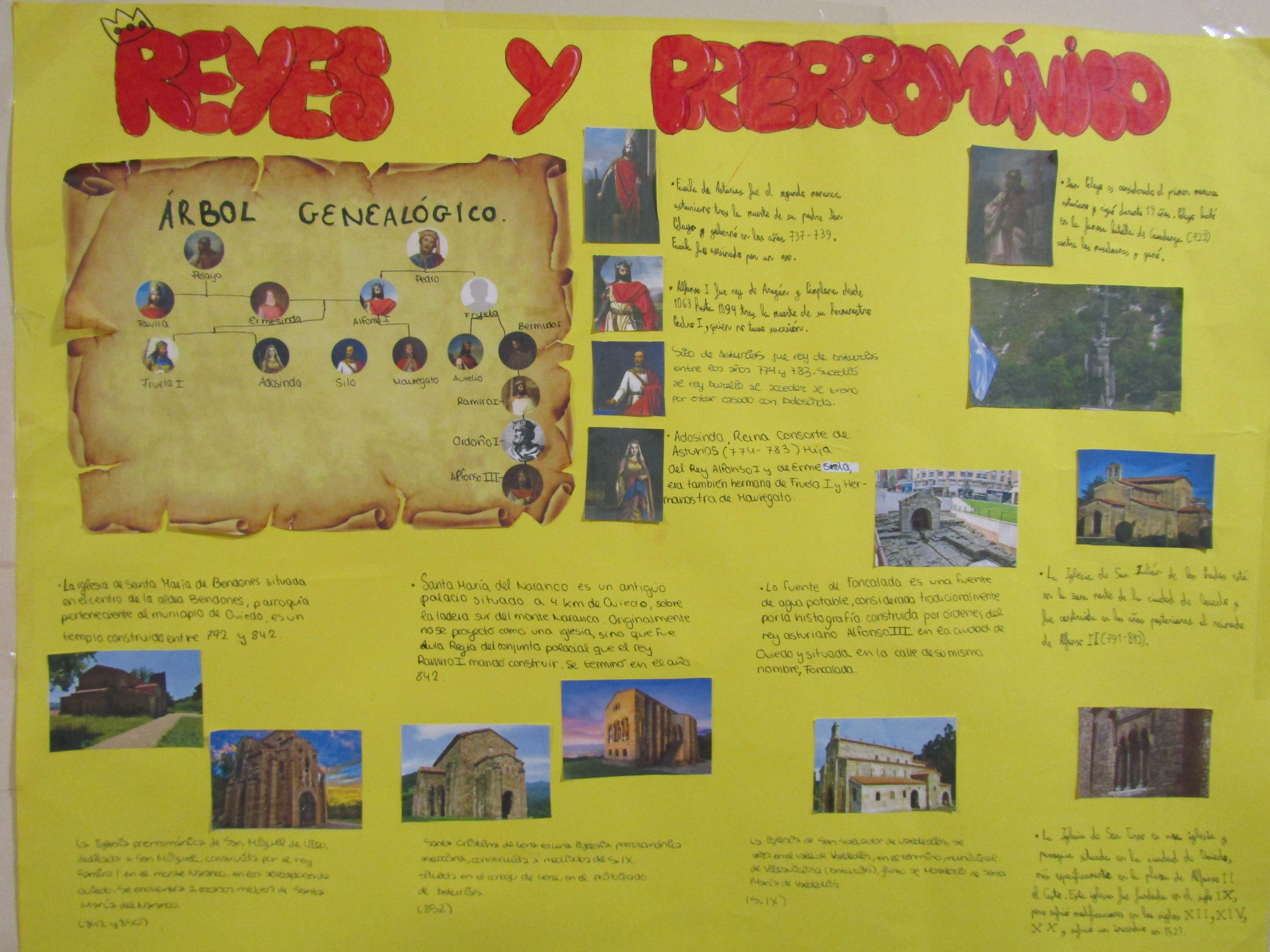 Este proyecto ha sido INTERDEPARTAMENTAL, coordinado por el profesor de Geografía e Historia Sergio Fuente Requejo, y que ha contado con la gran ayuda, comprensión, esfuerzo e ilusión por el mismo de las profesoras: María José Menéndez del Departamento de Música y de Salomé Suárez del Departamento de Lengua y Literatura. En el primer caso, porque el alumnado ha interpretado una Cantiga del rey Alfonso X "el sabio", en el segundo caso por haber compartido lecturas de cuentos medievales con el grupo de 2ºJ, al que explicaron sus investigaciones. Además, dos alumnas de 4º F, de artes escénicas, Elena Lougedo y Cynthia Berros, interpretaron ante el grupo de 2ºB una estupenda performance narrando una historia sobre Don Pelayo, Doña Urraca, la Catedral y Santa María del Naranco. Así mismo, se debe agradecer a las compañeras Elena Vares por haber sido intermediaria y a María José Morán por la ayuda para la exposición de los murales".