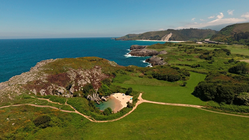 En la imagen aérea puedes observar la playa de Gulpiyuri (Monumento Natural). Se trata de una singularidad geomorfológica de primer orden, una playa sin mar, situada cien metros tierra adentro. Se ha originado por la inundación por el mar de una forma de erosión kárstica denominada...