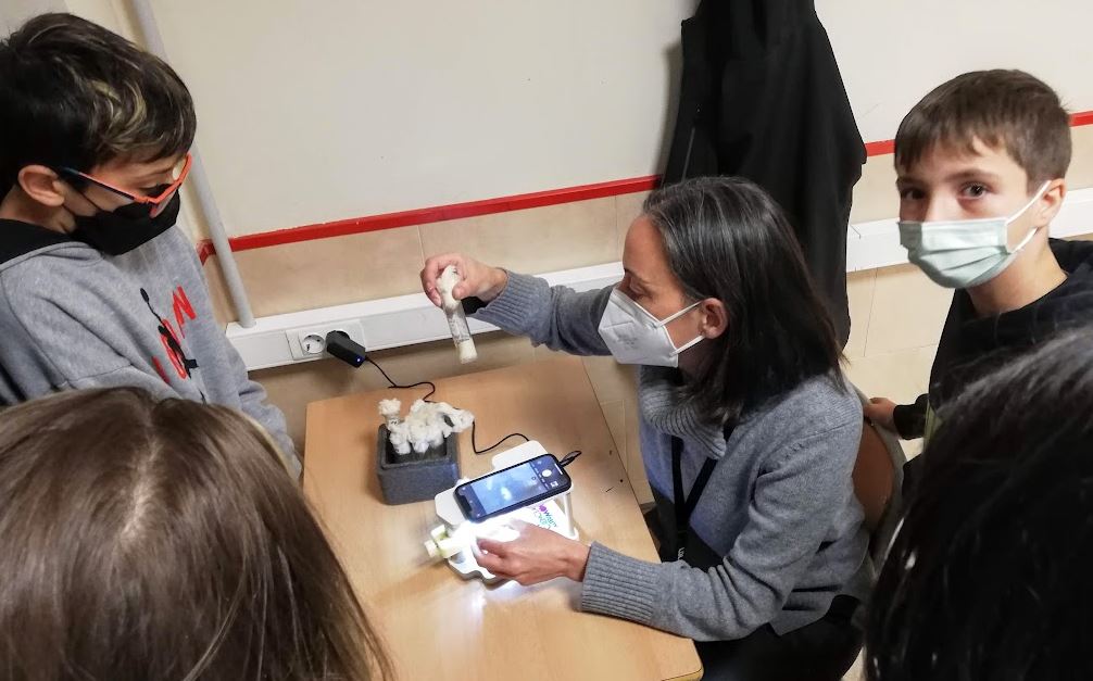 • Por su parte, el laboratorio aporta a los centros educativos: materiales educativos sobre genética; actualizaciones sobre las investigaciones realizadas; actividades de formación (por ejemplo, la realización de una práctica de bioinformática y, en algunos centros, puesta en marcha de un pequeño laboratorio móvil de biología molecular) y la organización de eventos de intercambio de conocimiento (jornadas de formación para docentes y congresos de puesta en común, actualización y divulgación para toda la comunidad participante).