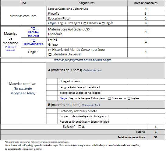 OFERTA EDUCATIVA 1º BACHILLERATO HUMANIDADES Y CIENCIAS SOCIALES Curso 23-24