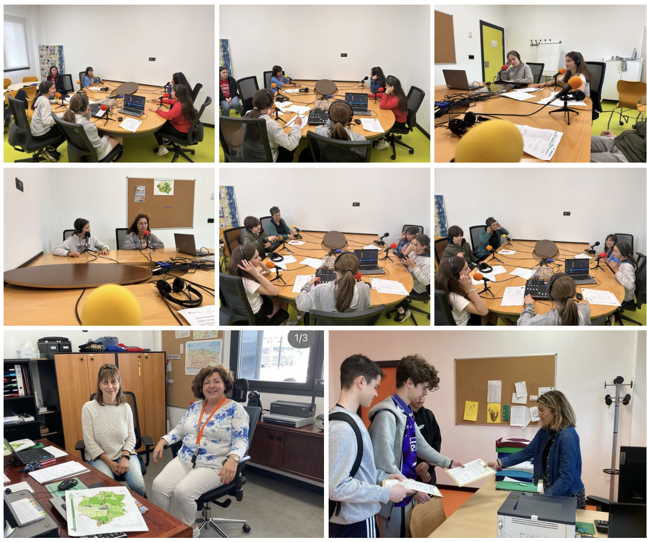 El equipo se ha organizado, se han repartido todos los papeles para crear un programa en el que han pasado por los estudios de Radio Fresno Alba (profe de Alemán), Natalia (profe de Tecno), Mireia y Cristina (profes de Inglés), Lorena (nuestra administrativa), Bego y Rosi (nuestras ordenanzas), Elisa y Lydia (alumnas de 1º), Cloe y Vera (alumnas de 2º), Dolores Pevida (inspectora de educación) e Isabel Rivera (nuestra directora) que ha cerrado el programa.