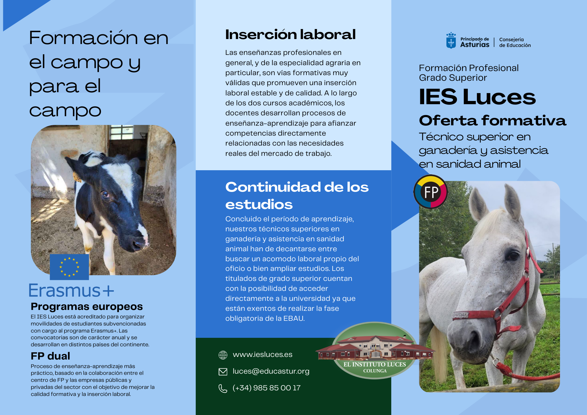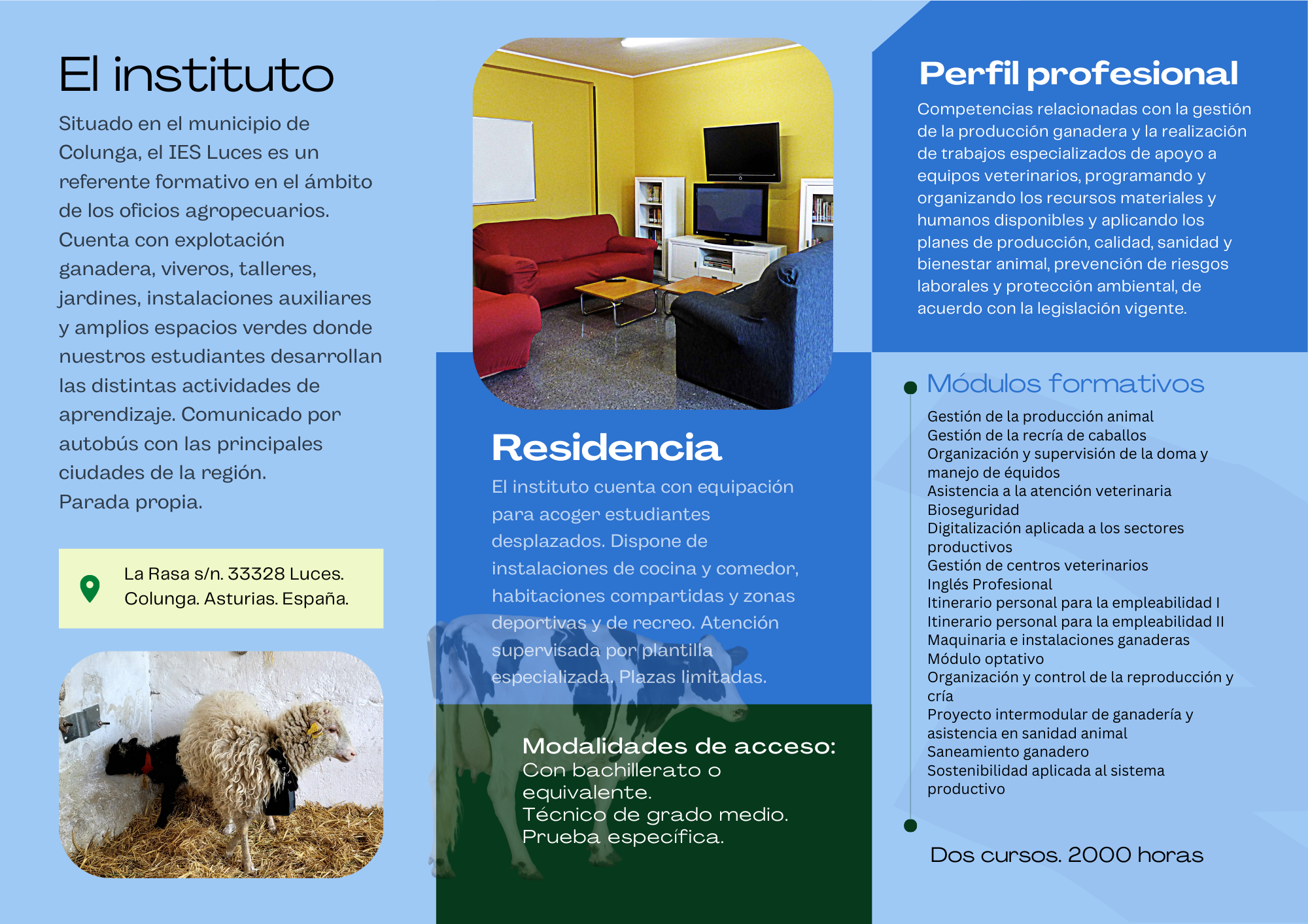 Información general sobre el ciclo formativo de grado superior de GANADERÍA Y ASISTENCIA EN SANIDAD ANIMAL (presencial). Se puede descargar toda la información en pdf.