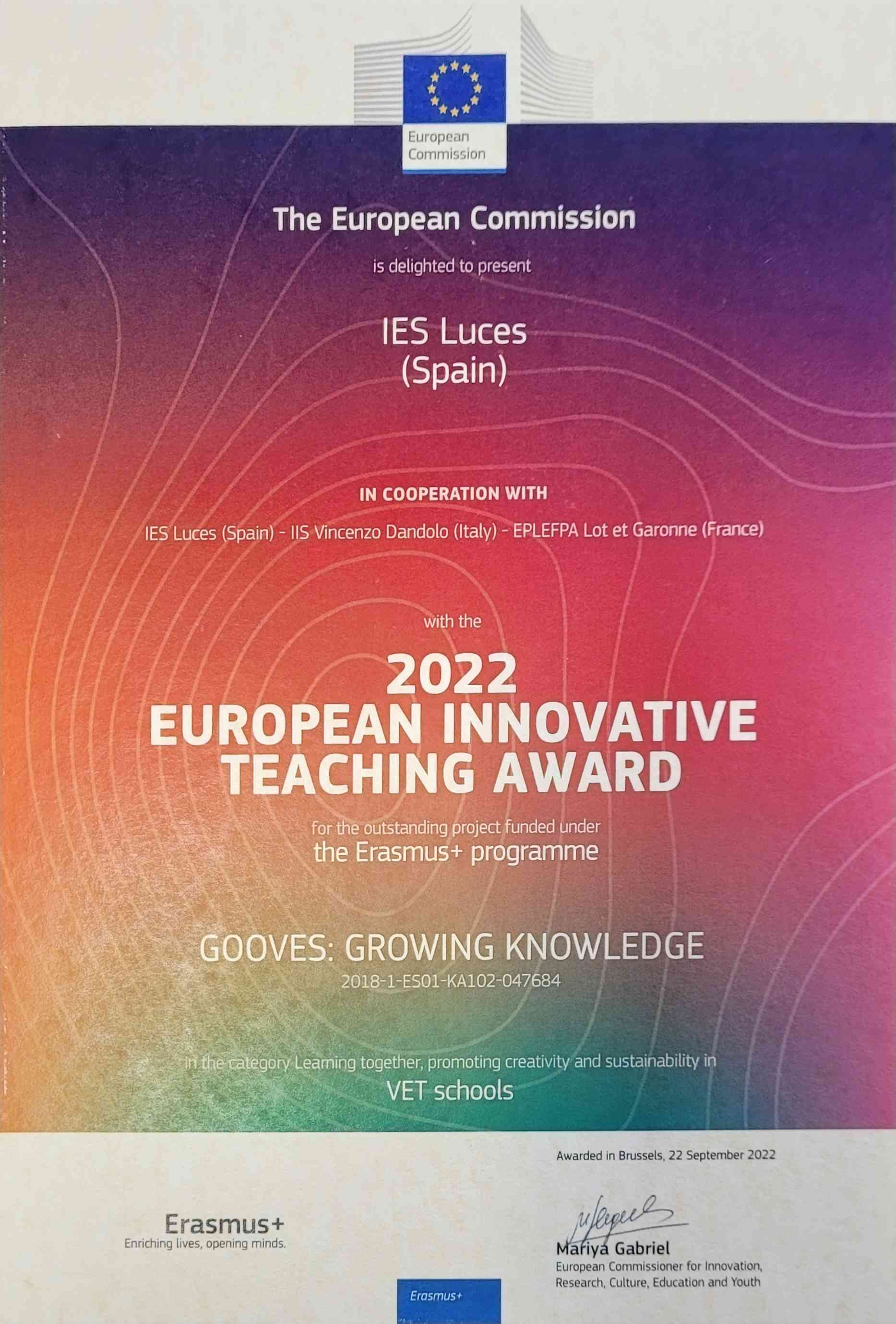 El pasado día 26 de octubre se celebró en Bruselas la fiesta de la educación en Europa. El motivo: la ceremonia de los Premios Europeos a la Enseñanza Innovadora (EITA por sus iniciales en inglés). Allí nos congregamos 98 docentes y no docentes de toda la Unión y países asociados, para recibir el galardón que nos distingue como los mejores de entre todos los proyectos presentados durante el año. El IES Luces de Colunga recibió la distinción en la categoría Formación Profesional. Como coordinador Erasmus+ en el instituto, el profesor Francisco J. Ruiz recogió la distinción de manos de la Comisaria Europea de Innovación, Investigación, Cultura, Educación y Juventud, la búlgara Mariya Gabriel. En su discurso, la Comisaria alabó el espíritu europeo que impregna todos los trabajos galardonados y la vocación inclusiva y transnacional de los que hacen posible que miles de jóvenes tengan la oportunidad de aprender juntos, sin prejuicios ni barreras, en pos de un proyecto común llamado Europa. Desde aquí queremos agradecer la acogida dispensada a los cuatro respresentantes españoles, con mención especial a los colegas de las delegaciones belgas (valona y flamenca) y alemana, con las que tuvimos la oportunidad de compartir una jornada muy agradable y productiva.