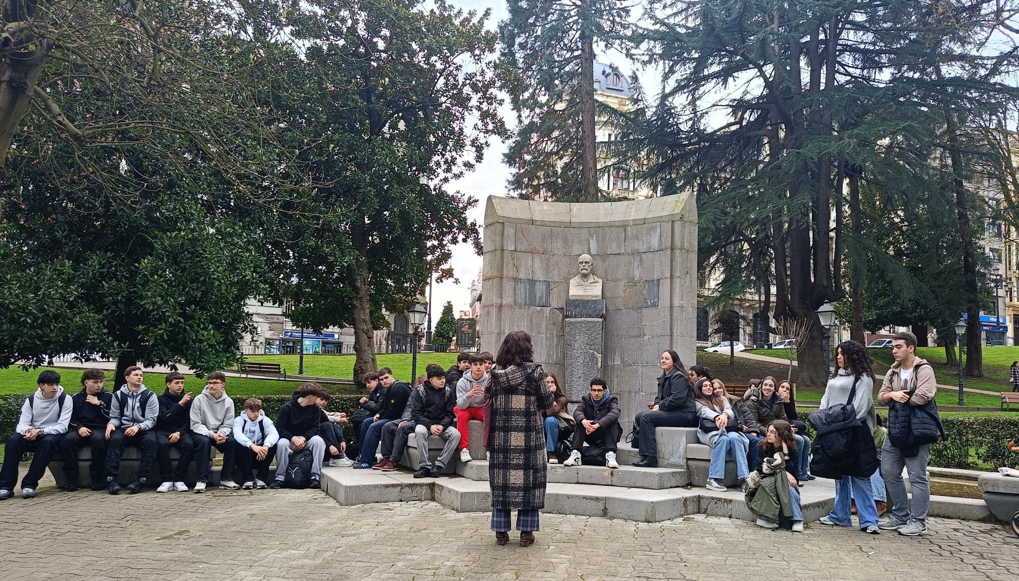 El pasado viernes 13 de marzo el alumnado de 1º de Bachillerato participó en la "Ruta literaria La Regenta de Leopoldo Alas, Clarín". En ella recorrieron los principales lugares que aparecen mencionados en la novela: el Parque San Francisco, los Jardines de La Rodriga, el Fontán, la Plaza del Ayuntamiento y la Plaza de la Catedral. El recorrido se acompañó de la explicación de nuestra guía y de la lectura por parte del alumnado de una serie de fragmentos de La Regenta. Ha sido una experiencia muy enriquecedora y el perfecto cierre a la narrativa del S. XIX estudiada en este trimestre.
