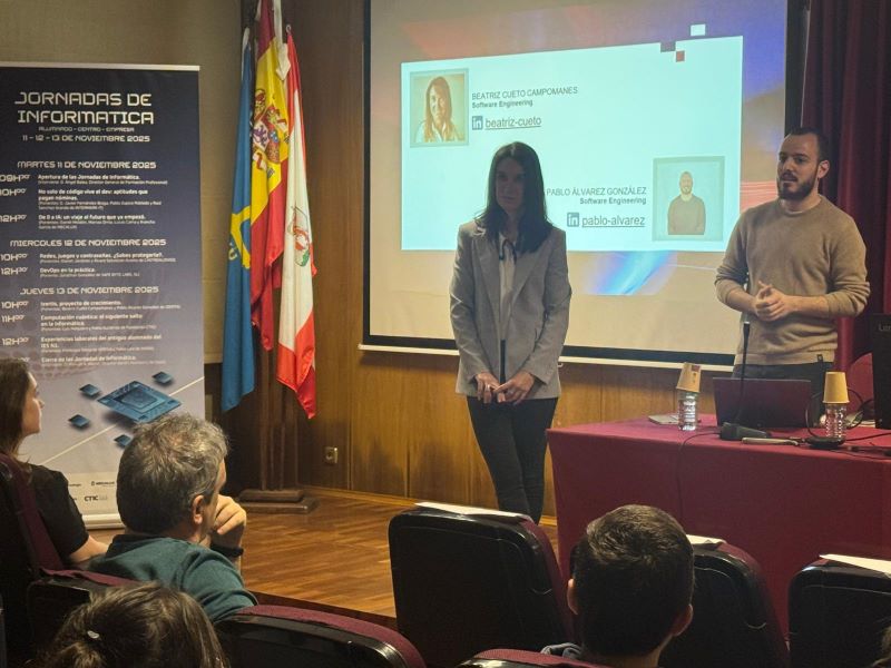 Cerramos estas jornadas con otras tres charlas muy interesantes: - Beatriz Cueto y Pablo Álvarez nos han contado cómo la empresa en la que trabajan, Izertis, ha ido creciendo desde sus inicios hasta convertirse en la importante multinacional que es hoy. - Pablo Gutiérrez, de Fundación CTIC, nos ha introducido en el apasionante mundo de la computación cuántica. - Francisco Sierra y Pablo Laiz, antiguos estudiantes del centro, nos han hablado sobre su experiencia laboral desde que se graduaron, aportando consejos muy valiosos para nuestros estudiantes.