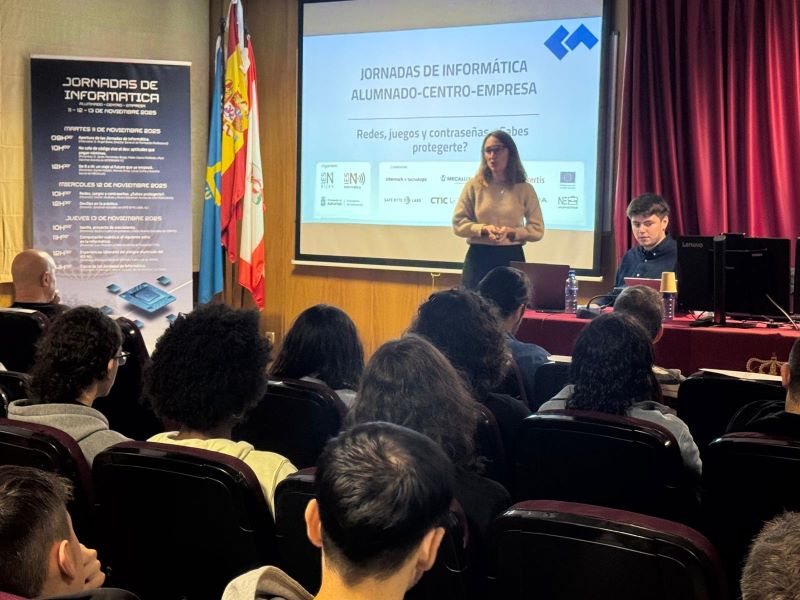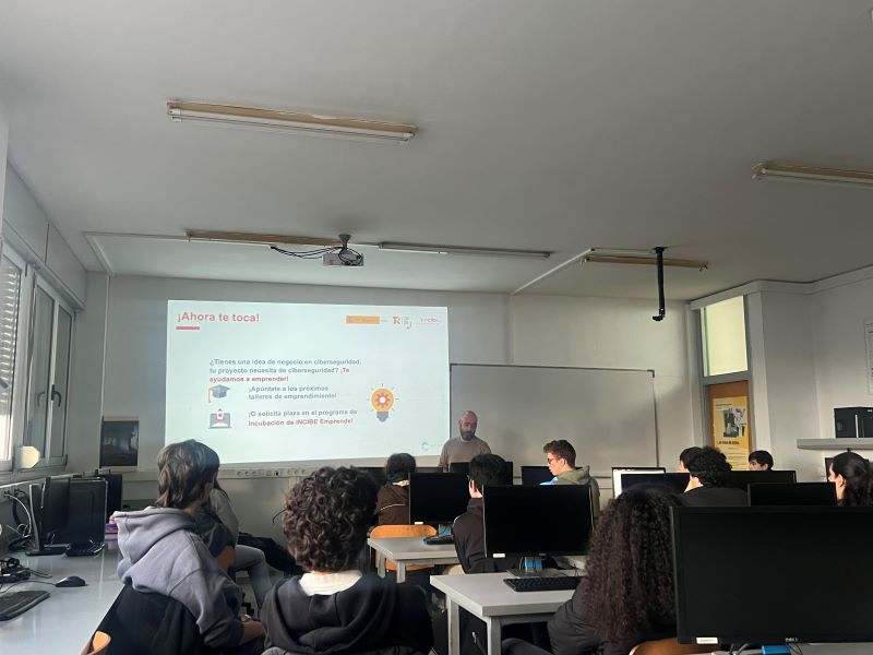 De la mano de INCIBE y su programa INCIBE EMPRENDE se ha desarrollado una charla de la mano de Roberto López Bayón (CLUSTER TIC ASTURIAS) y Javier Rodríguez Álvarez (OBELISK) dirigida al alumnado de Informática y Comunicaciones del Centro centrada en la ciberseguridad como área fundamental en la labor diaria del perfil profesional y también como línea de acceso al mercado laboral y mejora de su empleabilidad, tanto en el ámbito de la especialización como en el del emprendimiento. Gracias al departamento de informática por la organización y a los ponentes por su tiempo.
