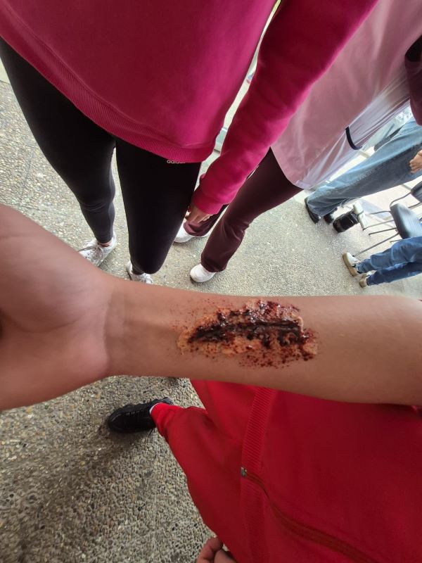 El día 31 de octubre, viernes, de 13h a 15h parte del alumnado de 1º y 2º de GM de Estética colaborando con 2º de GM de Peluquería, con la colaboración de las profesoras de taller: Isabel Bragado, Lorena Fernández, Paula Rodríguez, Begoña Rodríguez y Carmen Saras; colaboraron en la Gymkana que tuvo lugar en el Centro con una parada para maquillaje de Halloween/Día de los Muertos y retoque de peluquería en la entrada acristalada del edificio B.