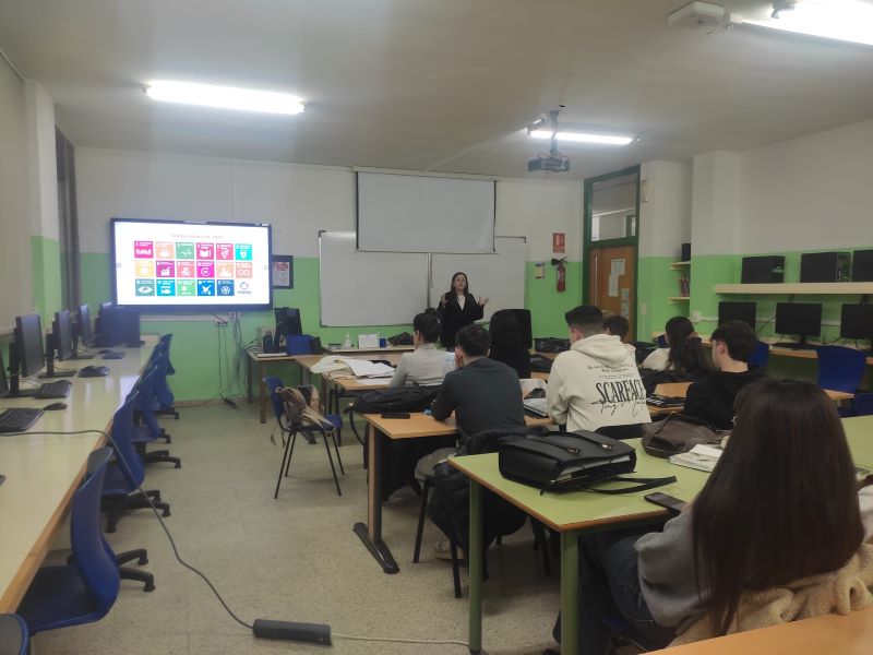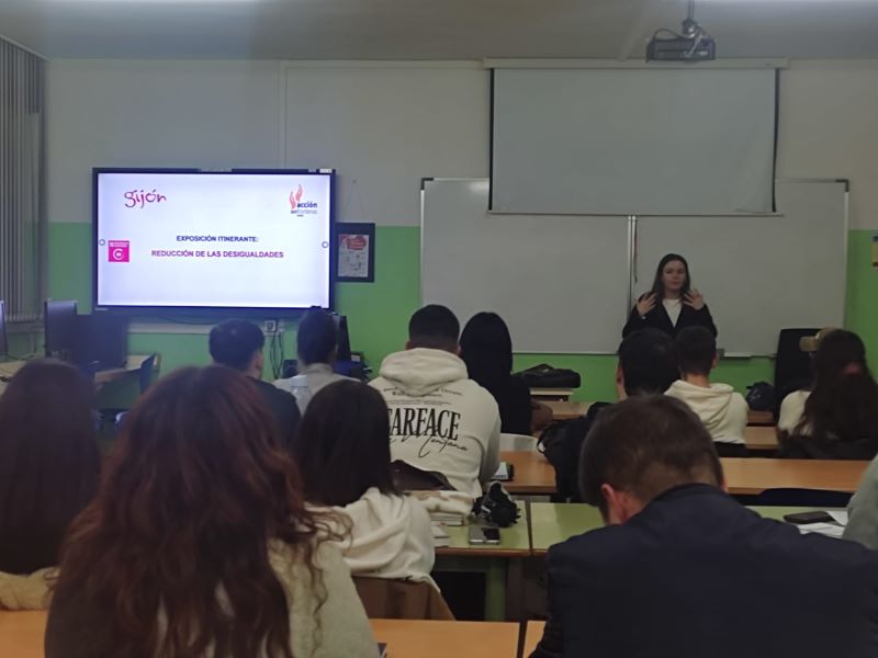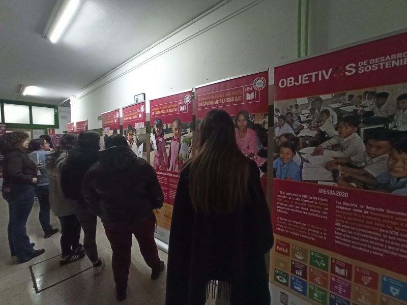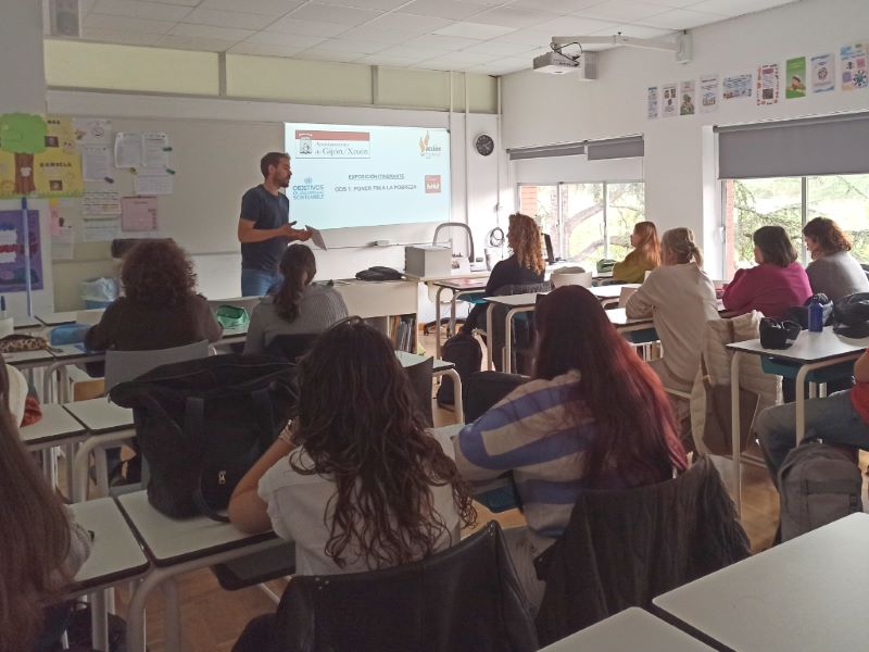 El alumnado de los ciclos formativos de la Familia Profesional de Servicios Socioculturales y a la Comunidad (Educación Infantil, Promoción e Igualdad de Género e Integración Social) participó en las charlas-taller impartidas por la ONG Acción sin Fronteras sobre los Objetivos de Desarrollo Sostenible (ODS) 1 y 2. Además, todo el alumnado del centro tuvo la oportunidad de visitar la exposición “Fin de la pobreza”, instalada por la misma entidad.