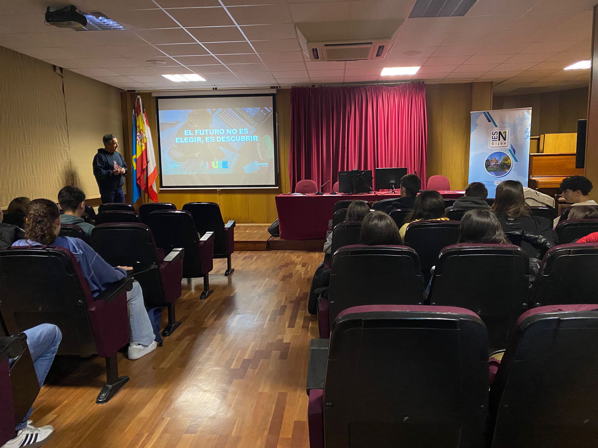 A lo largo de esta semana se ha celebrado el taller "Hablemos de tu futuro: El mercado de trabajo actual. Recursos formativos y sus salidas profesionales" dirigido a 2º de Bachillerato por parte de la Agencia de Empleo del Ayuntamiento de Gijón, y con Hera Talía Caldueño Fuentes mostrando todas las opciones existentes. Gracias por la colaboración.