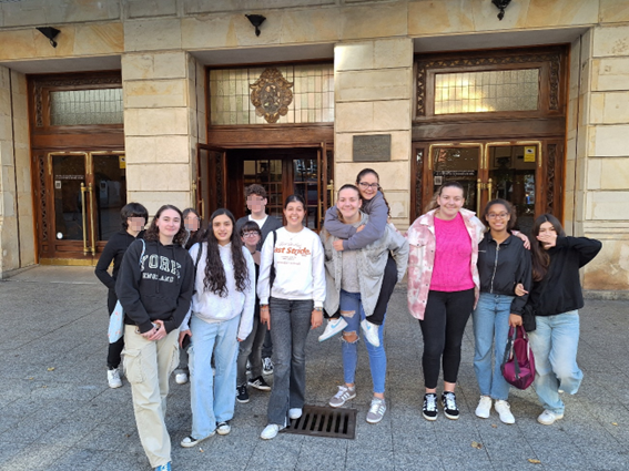 El pasado viernes 4 de octubre casi todos los alumnos que cursan la asignatura de Literatura Universal en 1º de Bachillerato pudieron disfrutar de una entretenidísima versión del clásico de Shakespeare en el Teatro Jovellanos. La compañía gijonesa Guayominí Producciones llevó a escena una adaptación de Hamlet en la que, además de repasar los momentos más intensos de la obra de teatro más representada de todos los tiempos, los espectadores disfrutaron de humor, baile, canciones, improvisaciones… y todo a un ritmo trepidante que hizo que la hora y media de espectáculo pasase vertiginosamente.