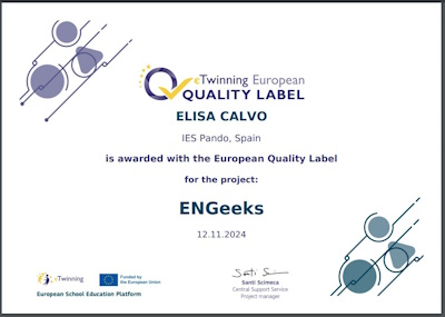 El IES Pando ha vuelto a conseguir, por cuarto curso consecutivo, un sello de calidad europeo por su participación en los proyectos eTwinning, bajo la coordinación de Elisa Calvo, profesora de Tecnología.