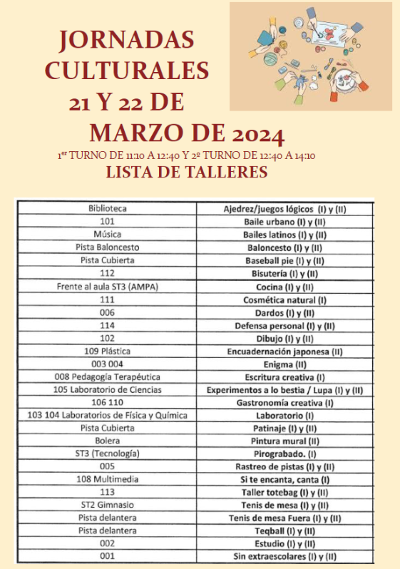 Talleres de nuestras Jornadas Culturales 2024