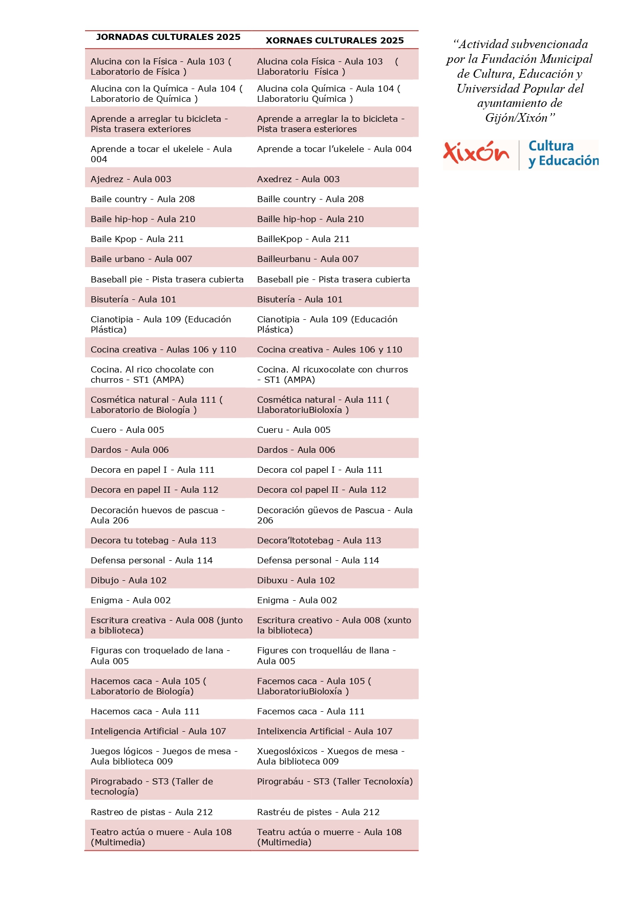 Actividad subvencionada por la Fundación Municipal de Cultura, Educación y Universidad Popular del Ayuntamiento de Gijón/Xixón