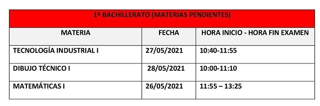 CALENDARIO DE EXÁMENES DE LAS MATERIAS PENDIENTES