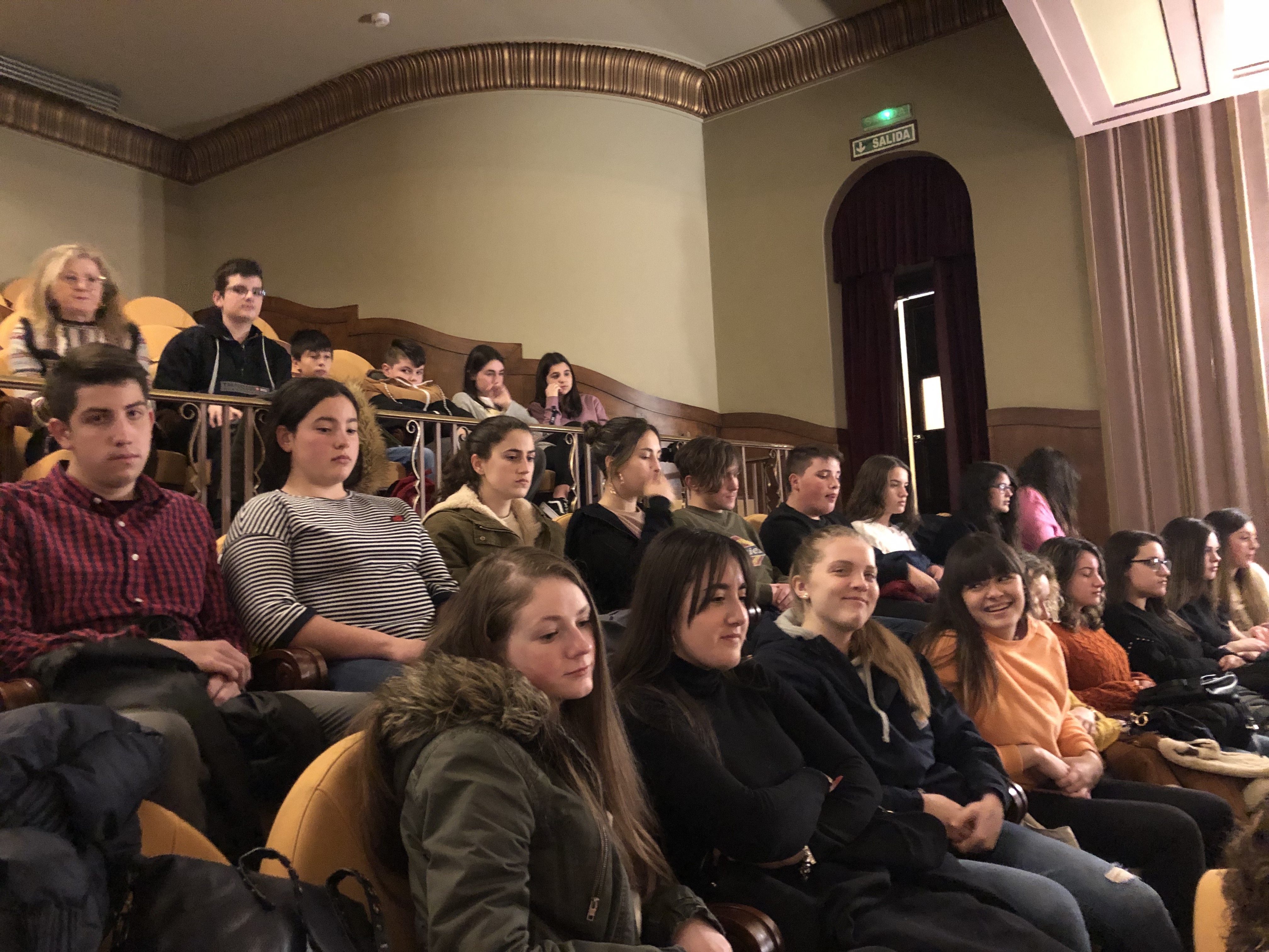 100 alumnos entre 1ºde la ESO y 1º de bachillerato acudieron en el día de hoy a la representación teatral "Bojiganga" a cargo de la Compañía Teatro del Cuervo en la Casa de la Cultura de Pravia.