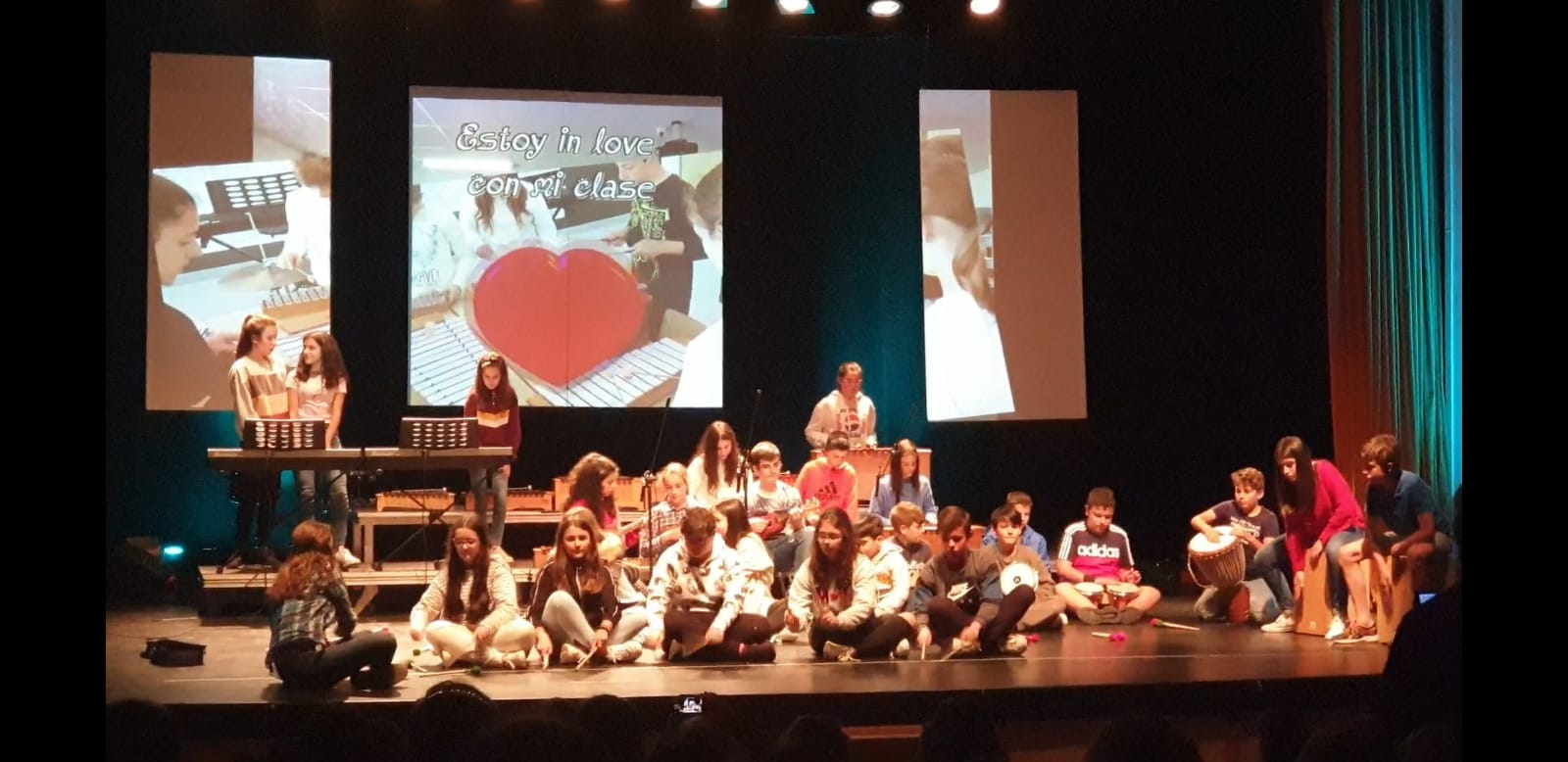 El miércoles 8 de Mayo el grupo “Maestros de la baqueta” de 1º de la ESO, participó en el proyecto "Crea la Banda Sonora de tu vida" coordinado por el luthier Antonio Domingo. El evento tuvo lugar en el Auditorio de la casa de la cultura de Mieres. Fruto de mucho entrenamiento (su profesora Noelia Rodríguez da fe de ello), interpretaron  de forma espectacular "Estoy in LOVE con mi clase". Si bien al principio se notaban  los nervios, poco a poco fueron diluyéndose a medida que interpretaban, tocaban diversos instrumentos y cantaban.