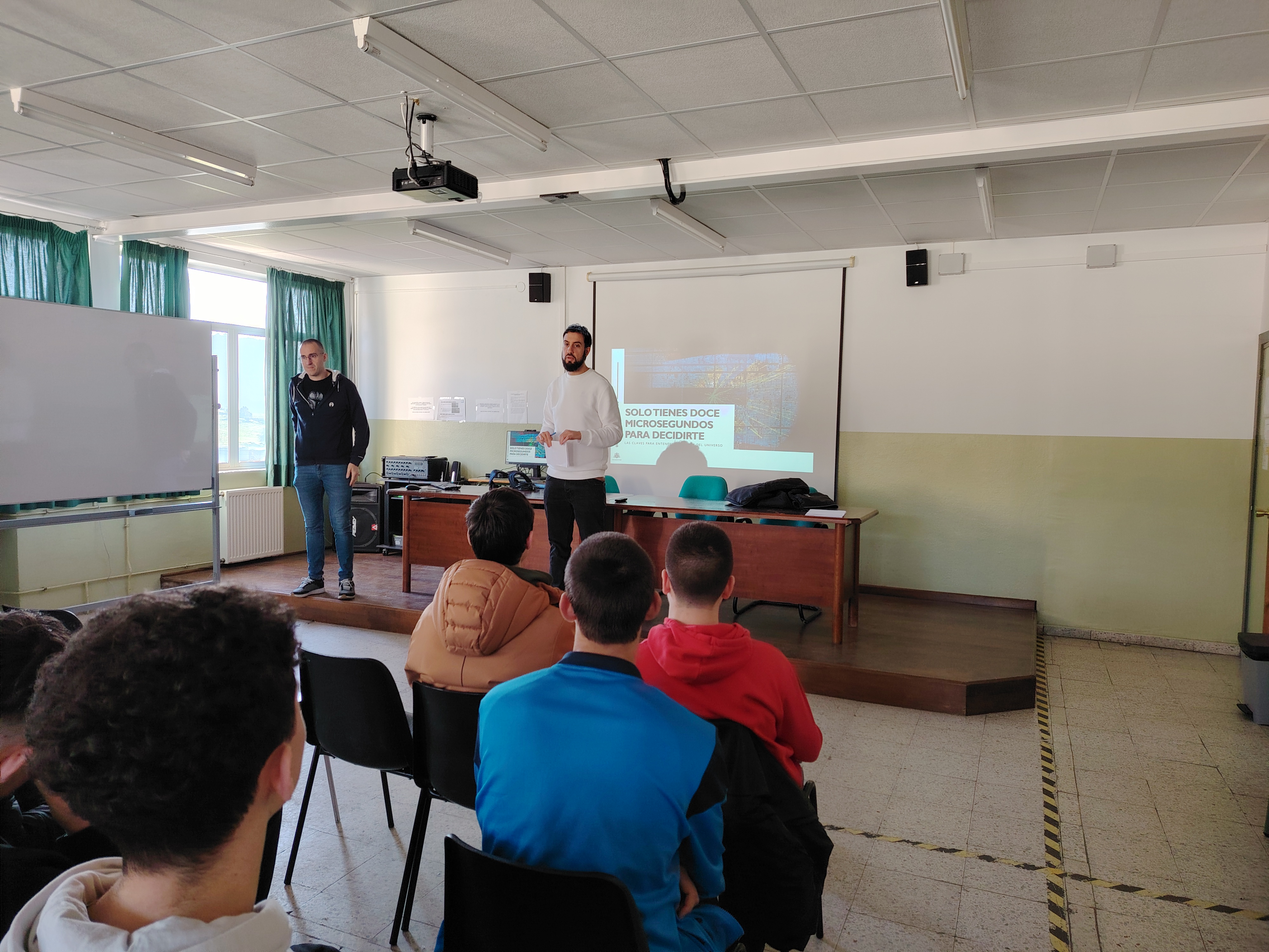 Santiago Folgueras, físico de partículas formado en la Universidad de Oviedo y colaborador en el CERN, impartió una ponencia al alumnado de 4º ESO y Bachillerato científico-técnico sobre los desafíos actuales en la física de partículas y los experimentos llevados a cabo en el Gran Acelerador de Hadrones (LHC).