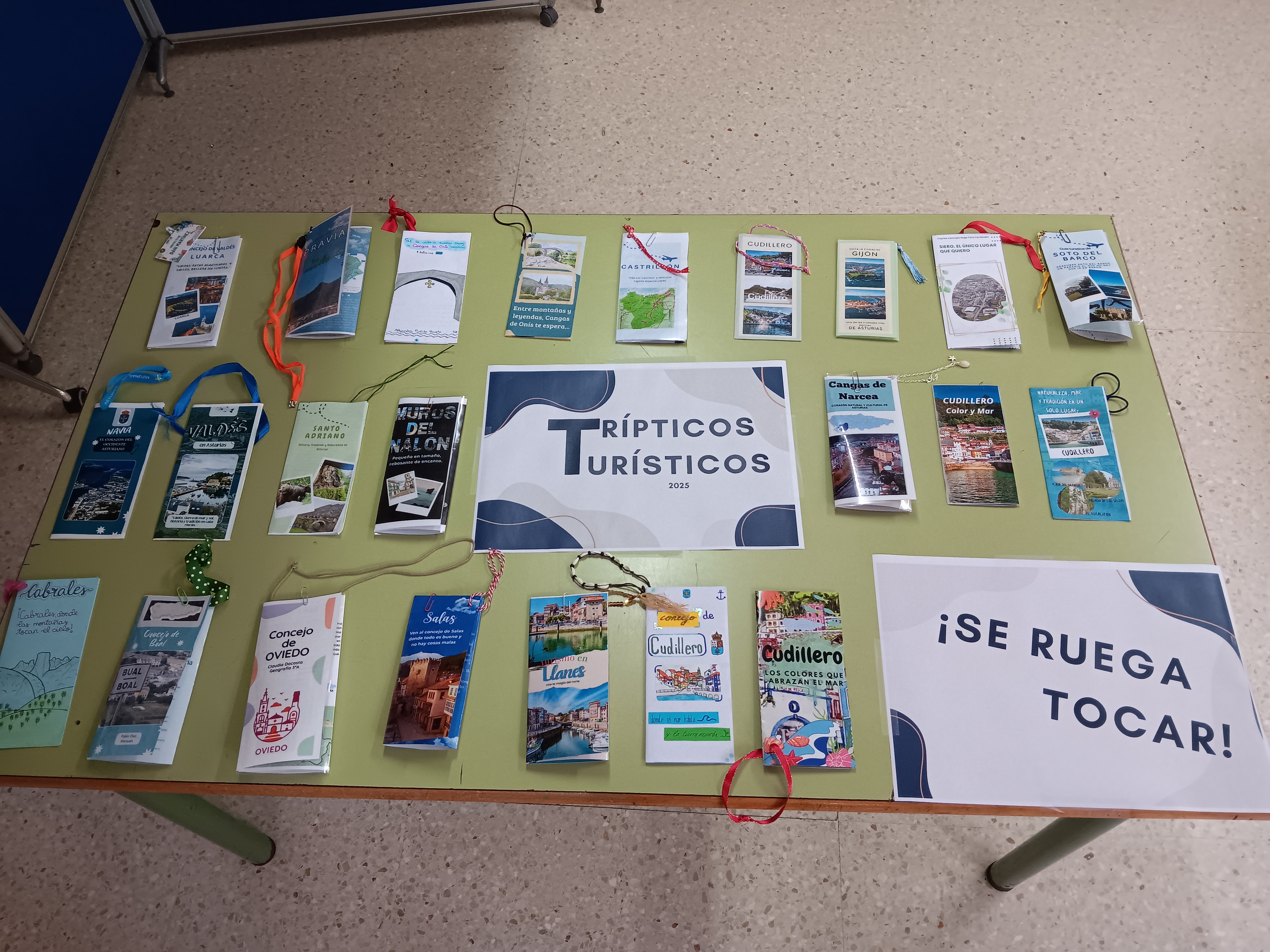 Como ya es tradicional, en el mes de mayo el alumnado de Geografía de 3º ESO ha organizado un evento en la Sala de Exposiciones del IES Selgas. Se trata de la muestra de Trípticos Turísticos de este año. La actividad consiste en escoger un conceyu (concejo) asturiano y proponer un folleto para su promoción turística. Para relacionarlo con la actividad interdisciplinar programada para 3º, el tríptico debe incluir alguna referencia a la mineria en dicho municipio.