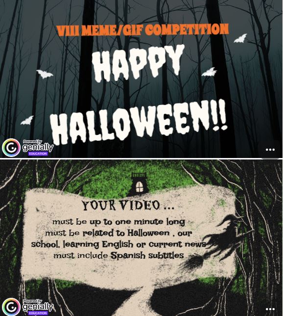 Como todos los años, el Departamento de Inglés celebra esta festividad anglosajona con el alumnado del centro. Entre las distintas propuestas hay dos concursos: el de memes/gifs, que ya va por la octava edición, y el de vídeos cortos. Todos los trabajos entregados por el alumnado deben estar relacionados con esta celebración y obtendrán puntos extras si además hacen referencia al IES Selgas o a la sufrida vida de un estudiante, que puede llegar a ser terrorífica...