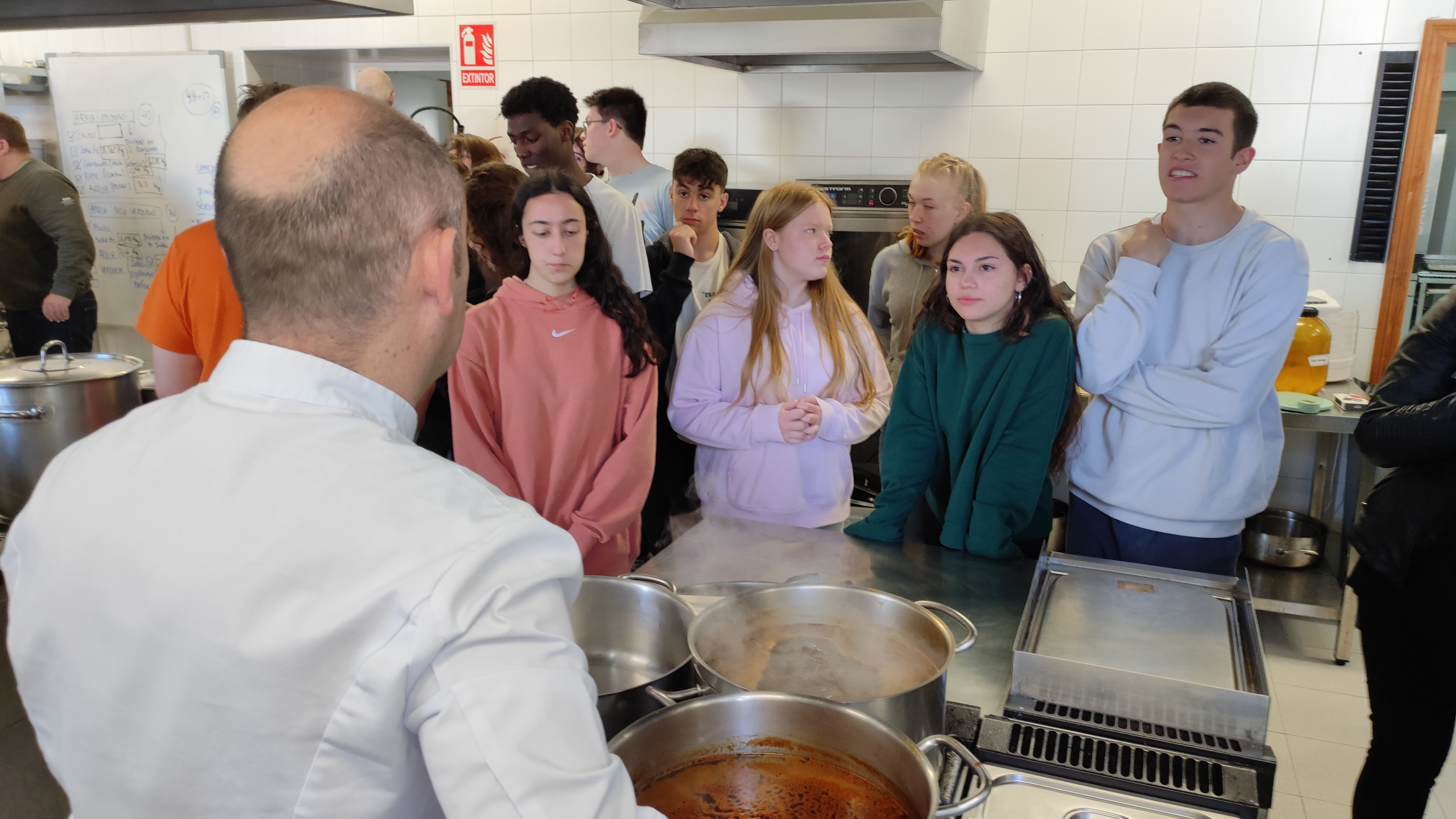 11.30 En las cocinas del instituto, los estudiantes y profesores preparan platos típicos españoles: