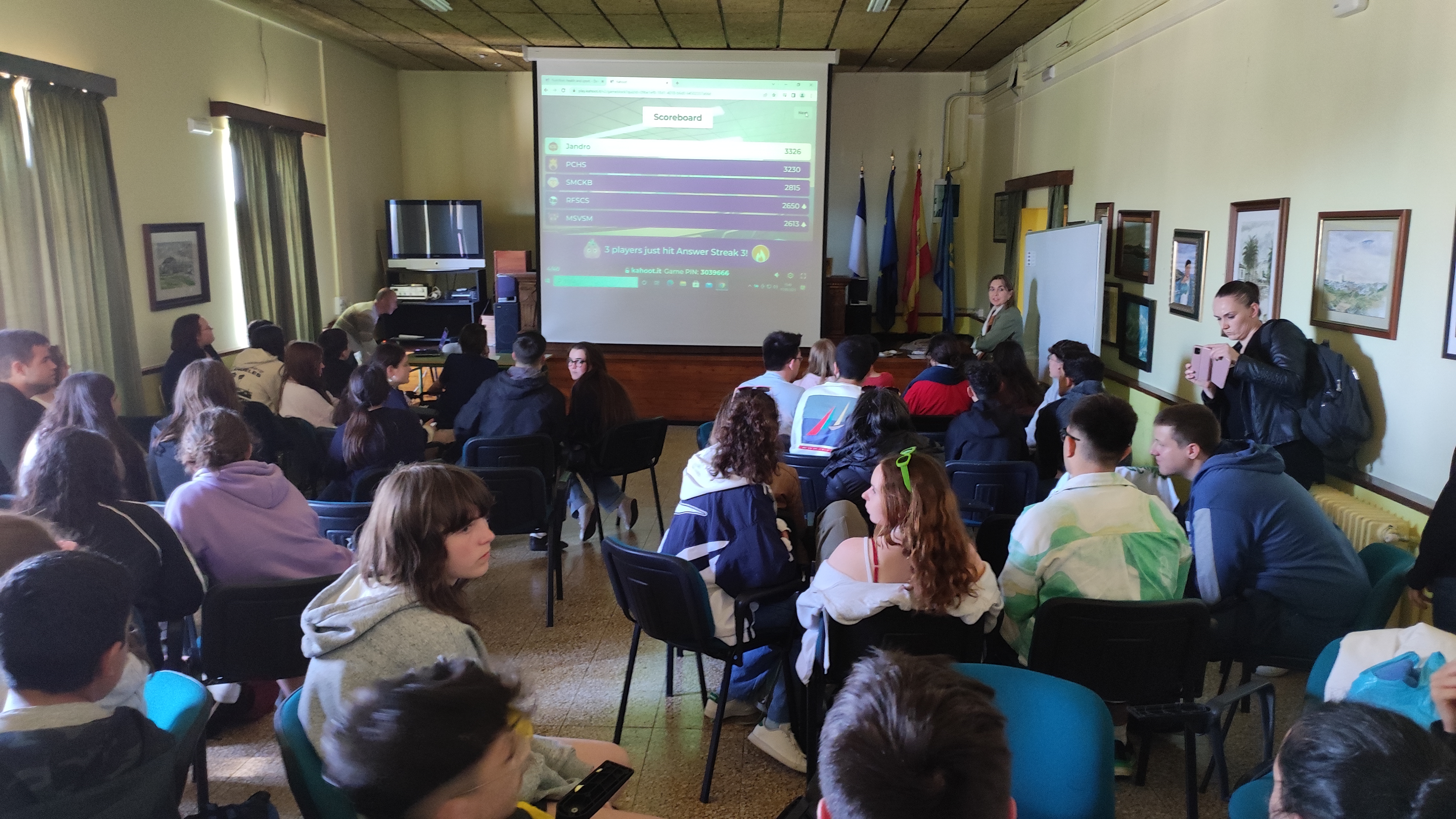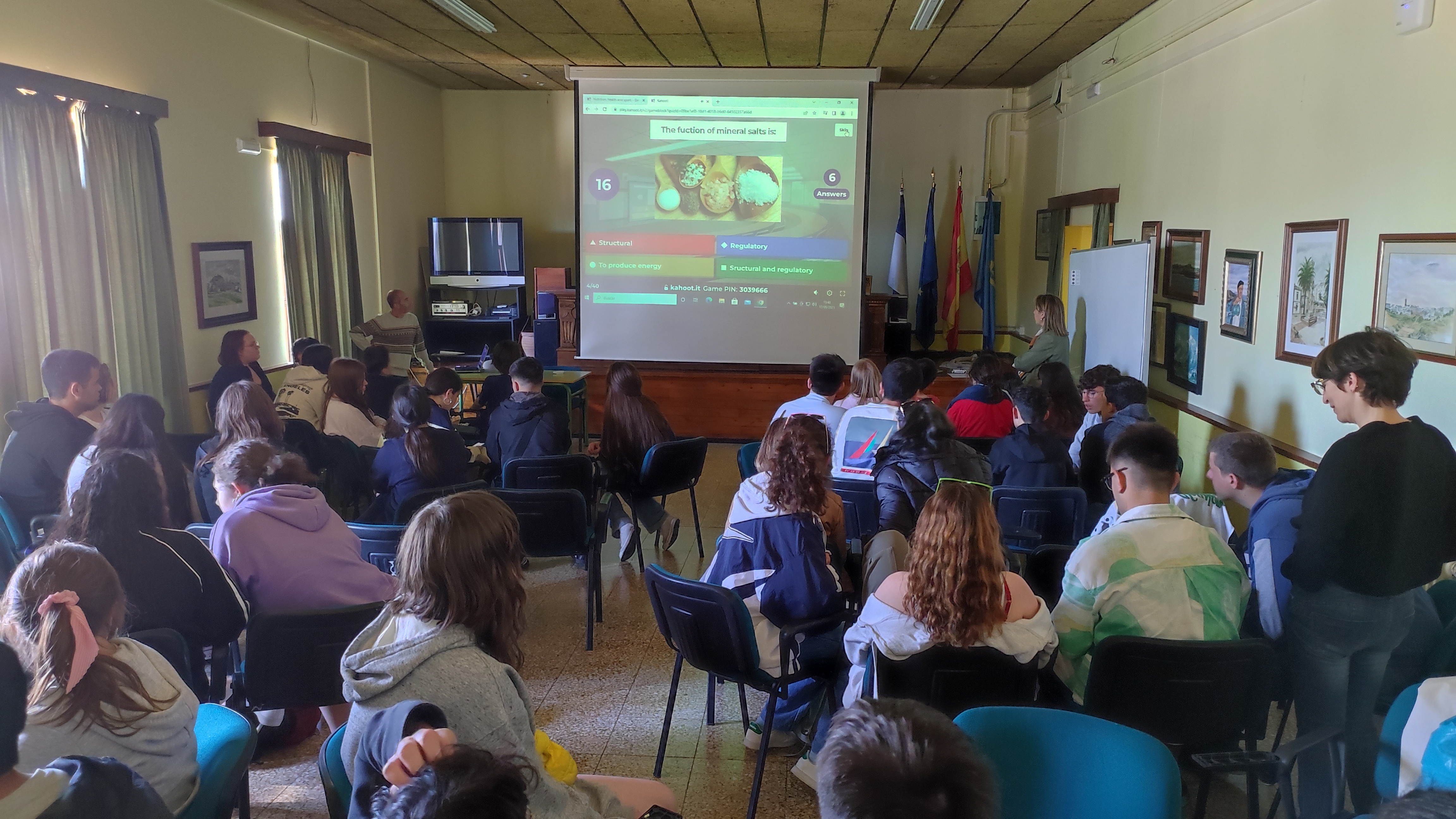 15.30 Estudiantes y profesores juegan un Kahoot sobre el tema de la comida y hábitos saludables, deporte, etc.