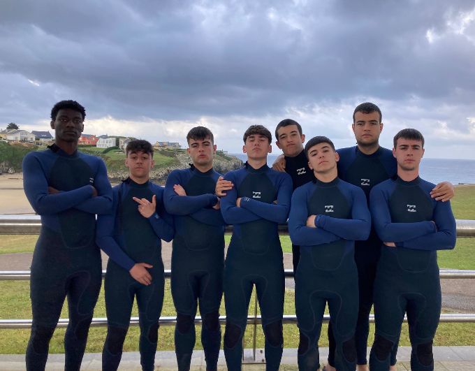 - Clase de surf, con monitores.