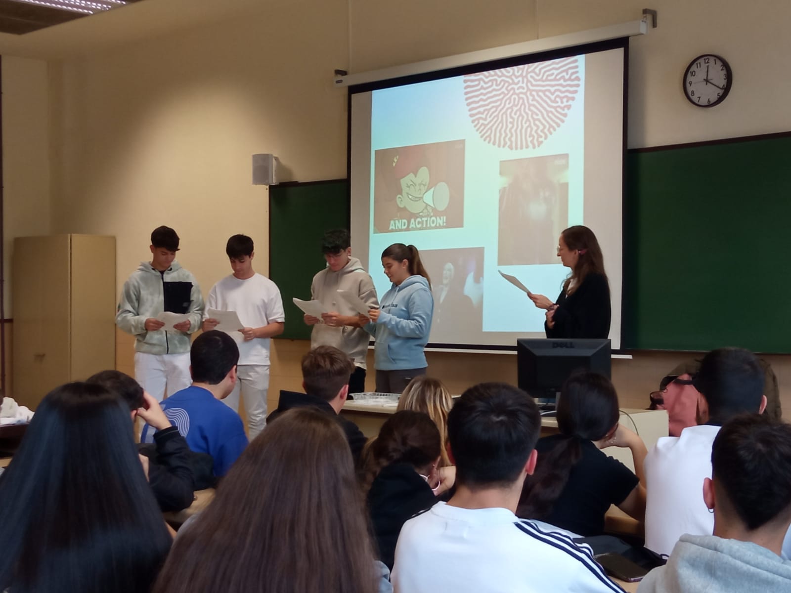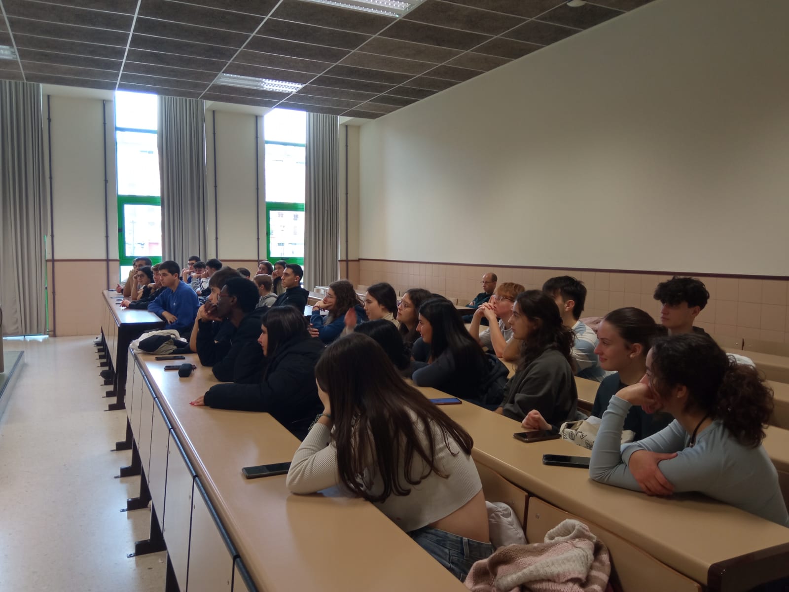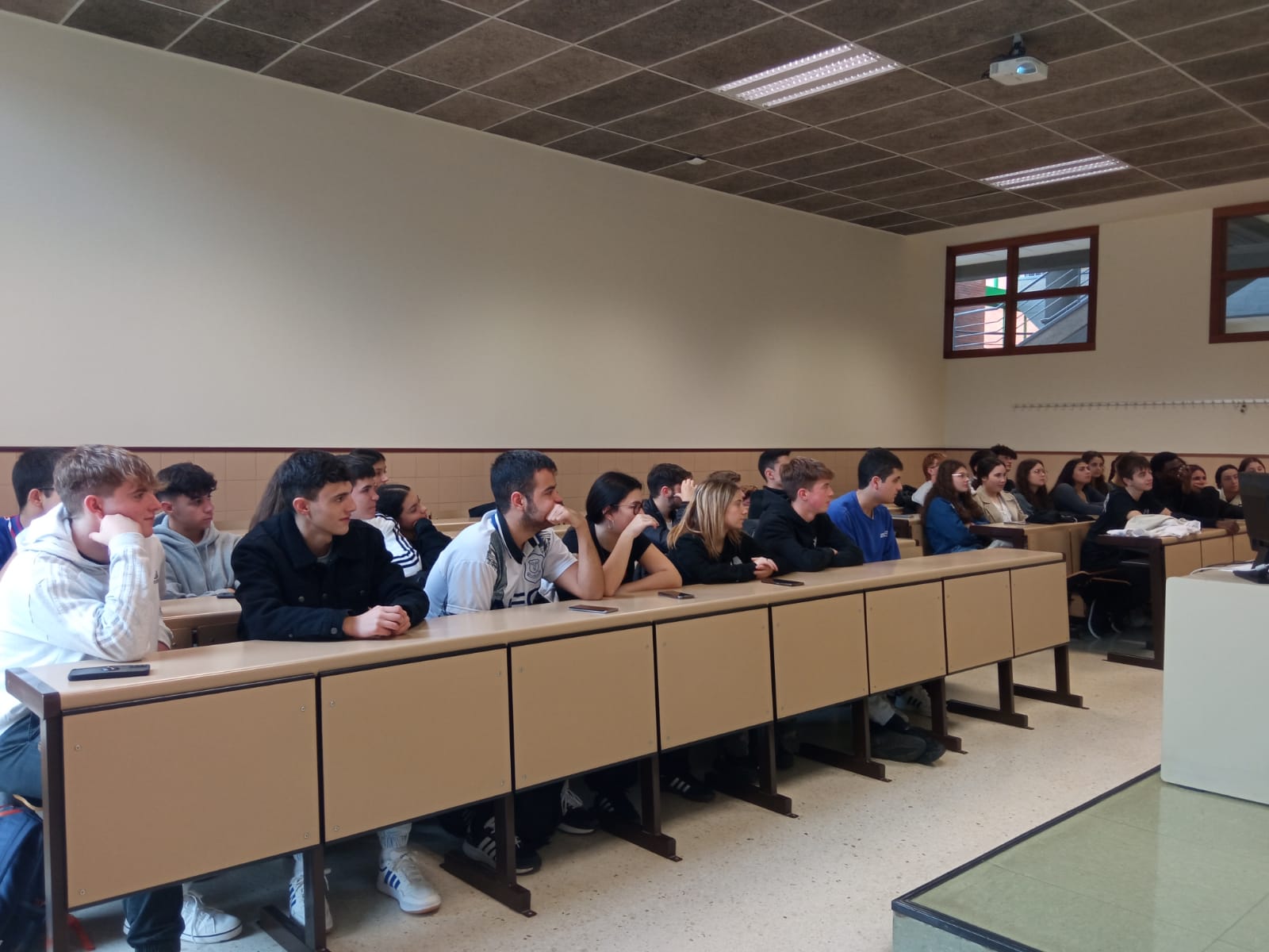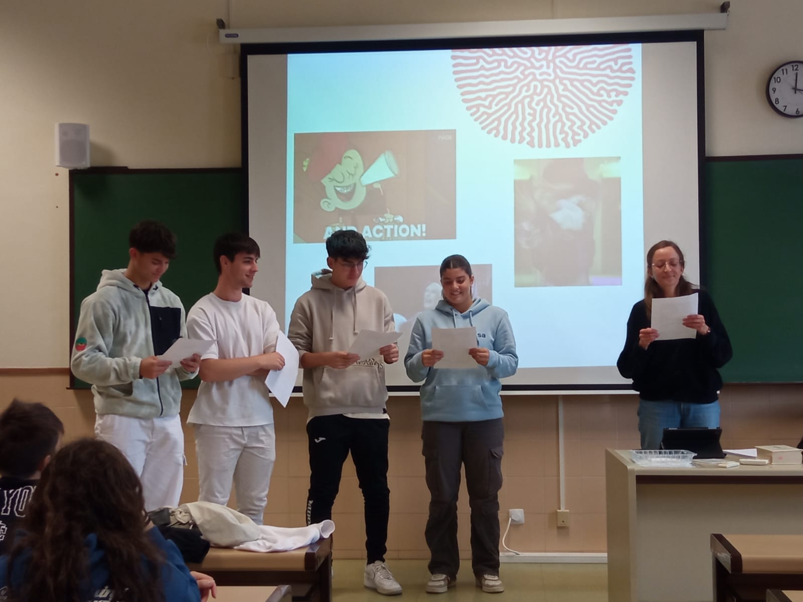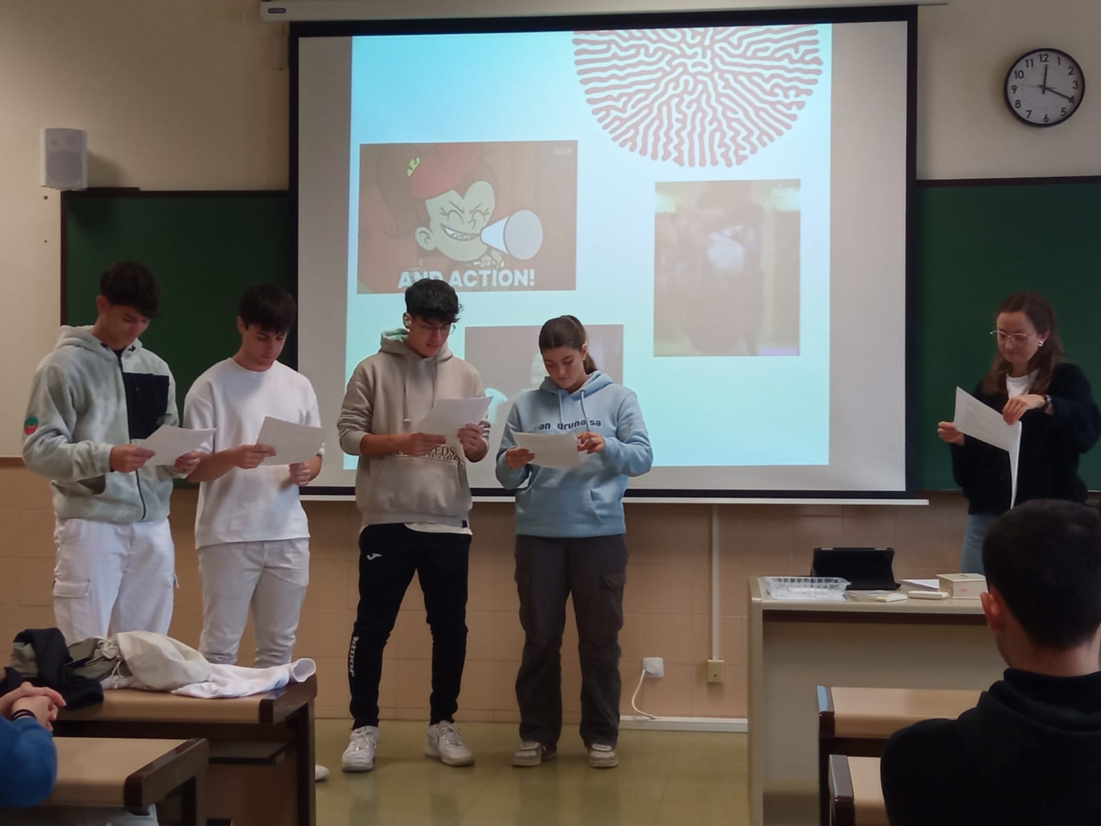 El alumnado de 1º de Bachillerato asistió a la charla "Quijote se escribe con T (de teatro)" en el marco de la Semana de la Ciencia y la Tecnología de la Universidad de Oviedo. La investigadora María Fernández Ferreiro y varios alumnos representaron la escena de los molinos de viento, un fragmento teatral de una adaptación de la obra de Cervantes. Aquí puedes ver algunas fotos del desarrollo de la charla: