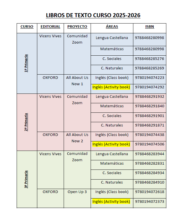 Listado de libros de texto del curso 25 - 26 pinchando en el siguiente enlace: