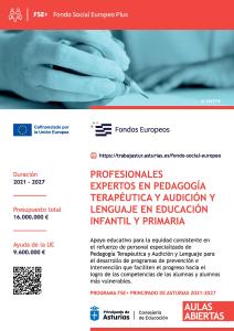 El centro ejecuta actuaciones cofinanciables por el Programa del Fondo Social Europeo Plus del Principado de Asturias (2021-2027 (Aulas Abiertas)