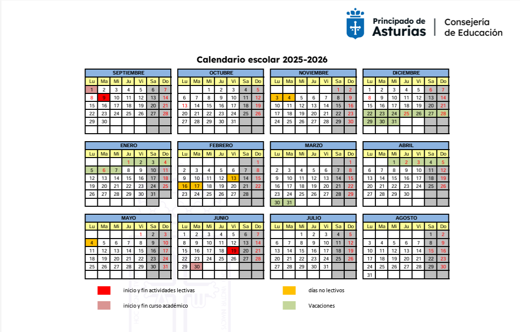 DÍAS NO LECTIVOS CURSO 2025/2026: