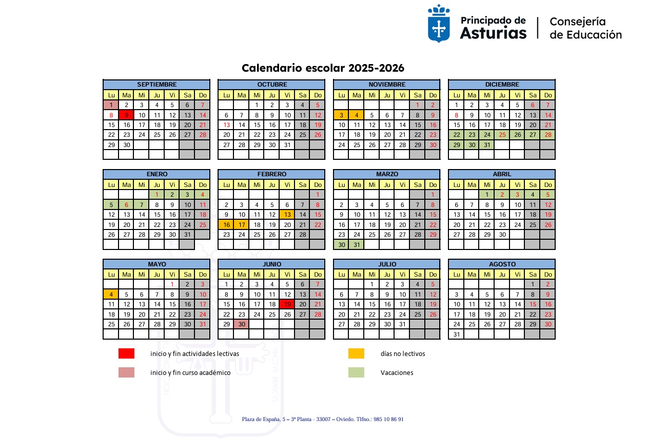Consejería publica el calendario escolar para el próximo curso 2025/26.