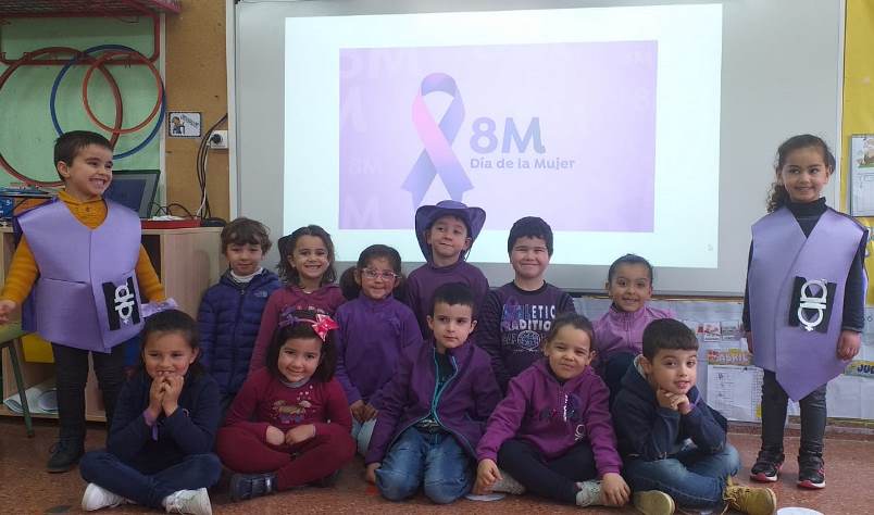 El pasado 8 de marzo celebramos el Día de la Mujer. Para ello, vinimos vestidos con nuestras mejores galas de color morado y nos hicimos una foto, por aula.