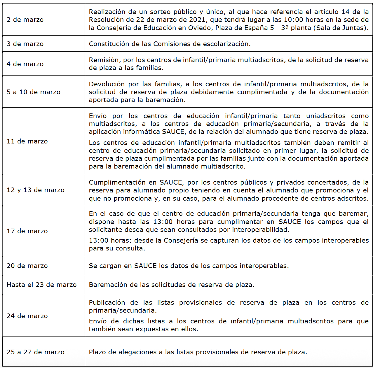 CALENDARIO PARA LA ADMISIÓN DE ALUMNADO CURSO 2026-2027