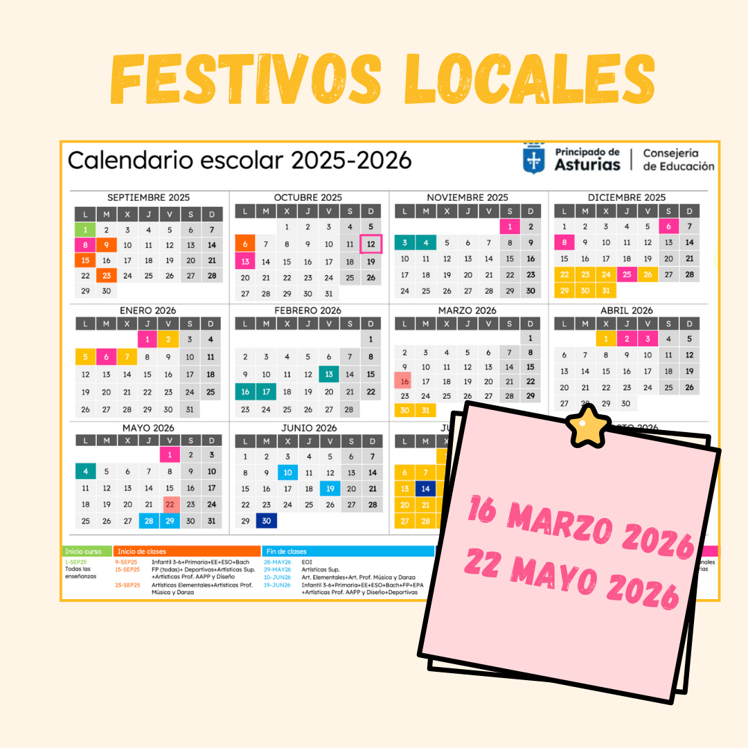 Días sustitutivos de fiestas locales que coinciden con días no lectivos para el curso 2025-2026.