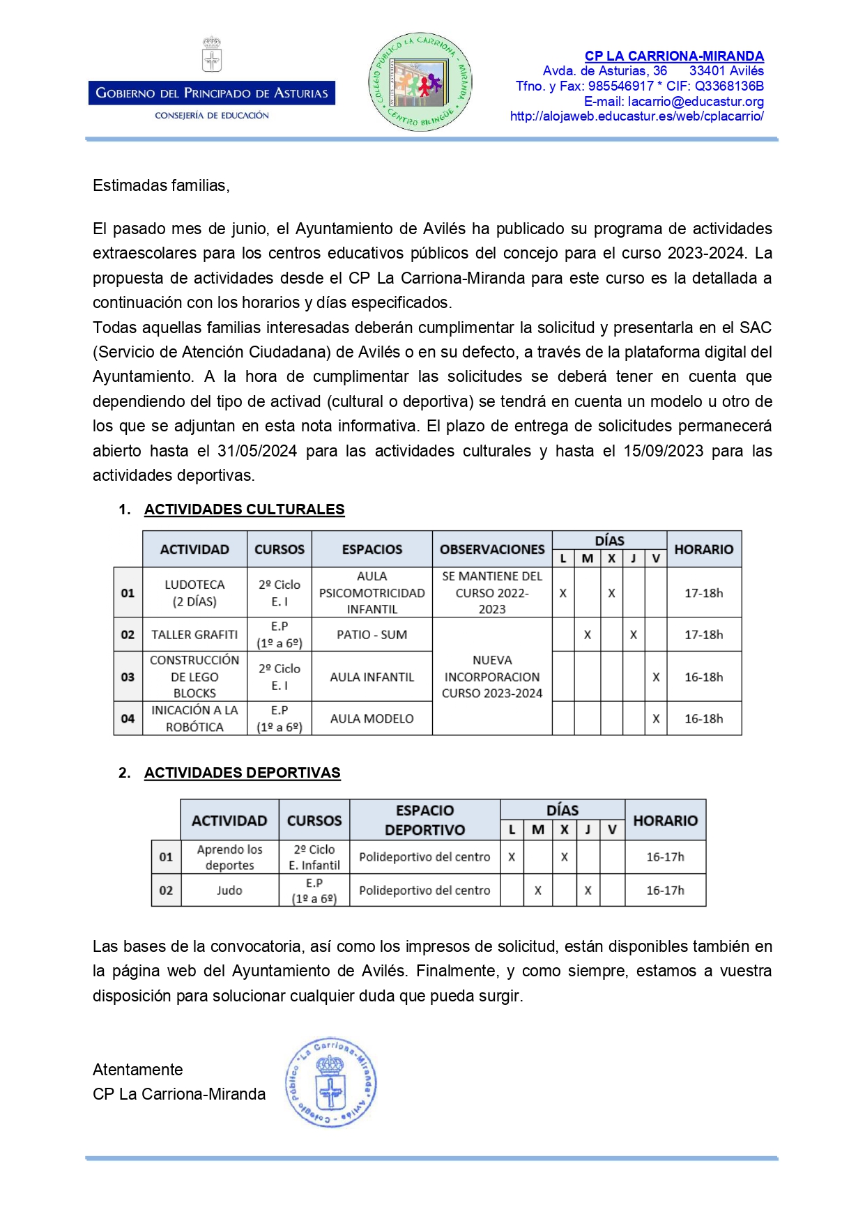 INSCRIPCIÓN ACTIVIDADES EXTRAESCOLARES 23-24