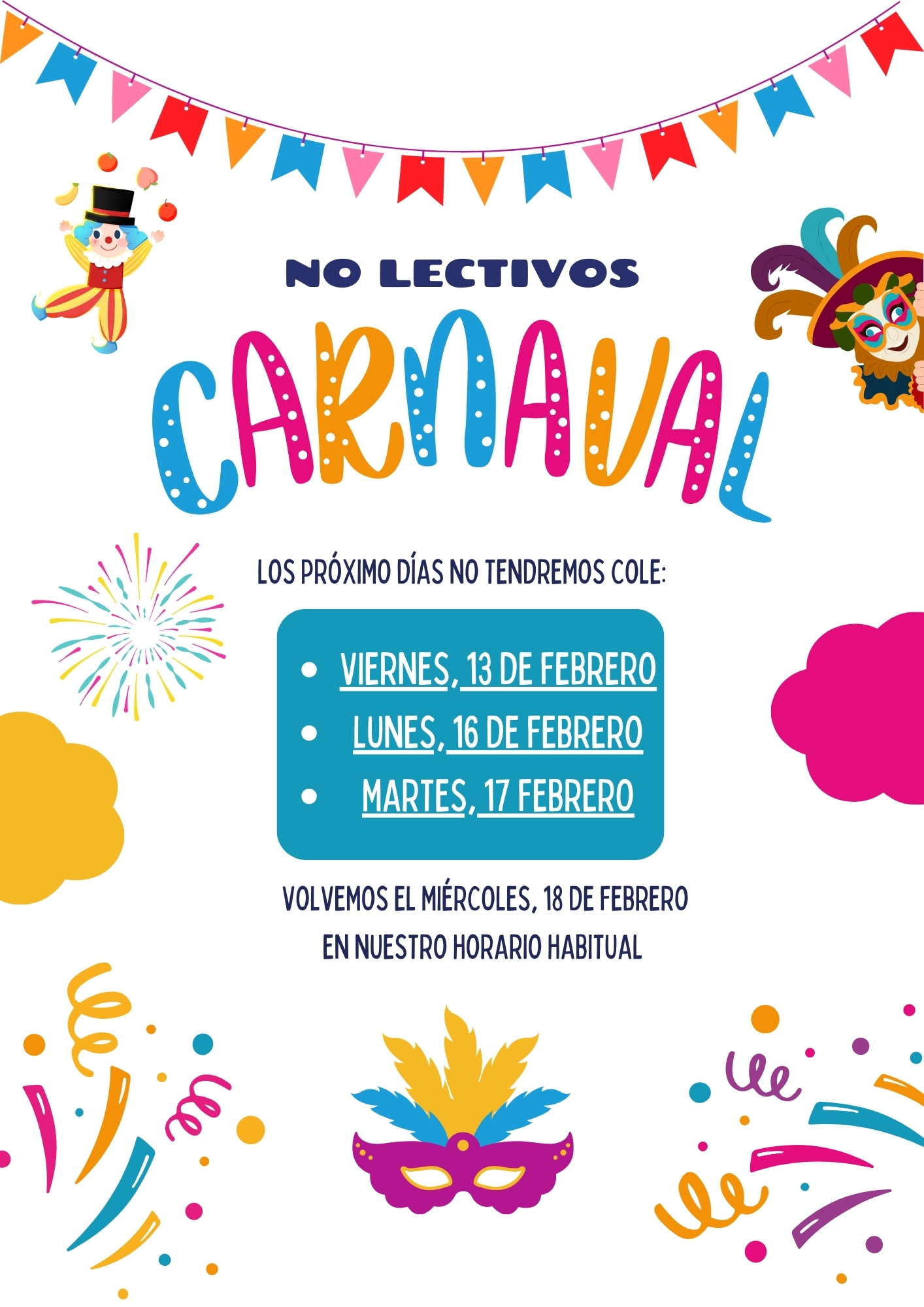 No lectivos carnaval