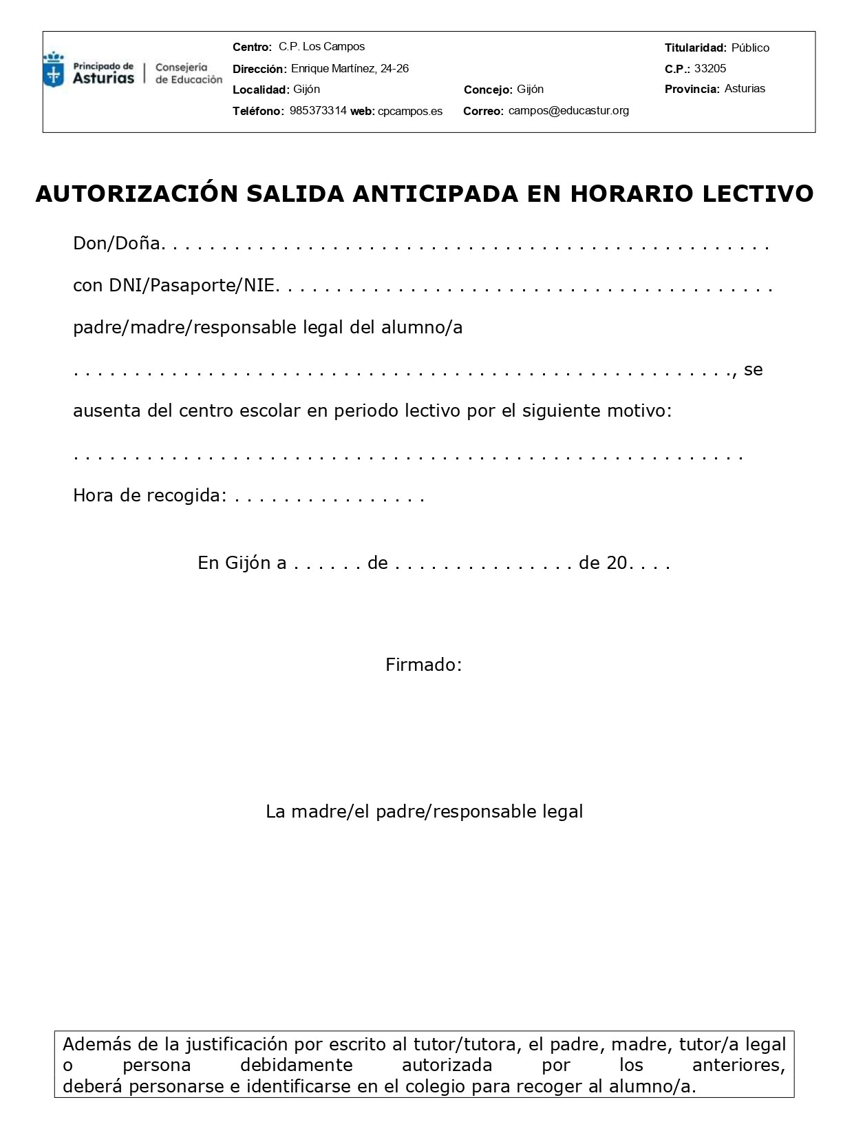 AUTORIZACIÓN SALIDA ANTICIPADA EN HORARIO LECTIVO