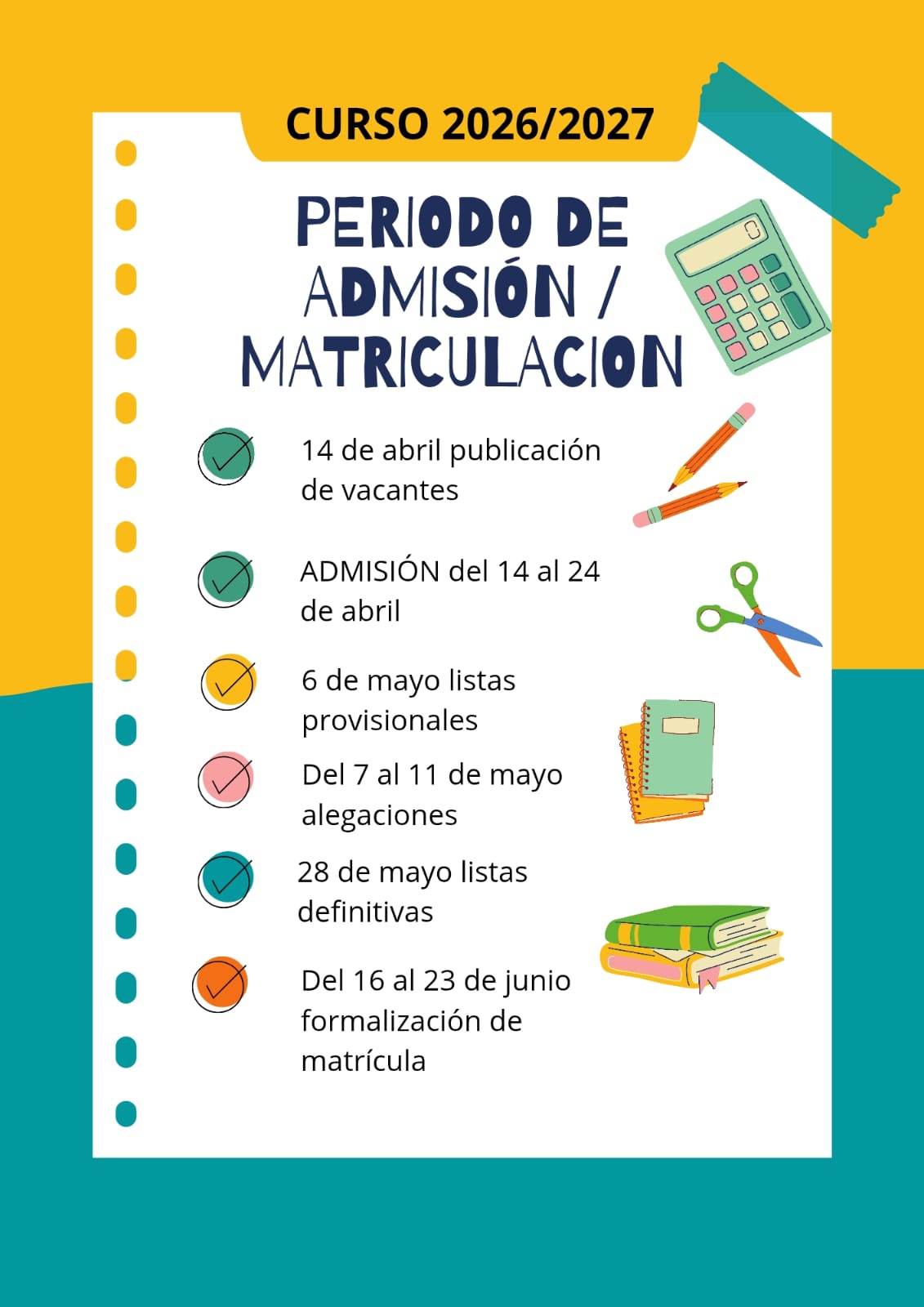 PROCESO DE ADMISIÓN CURSO 2026/2027